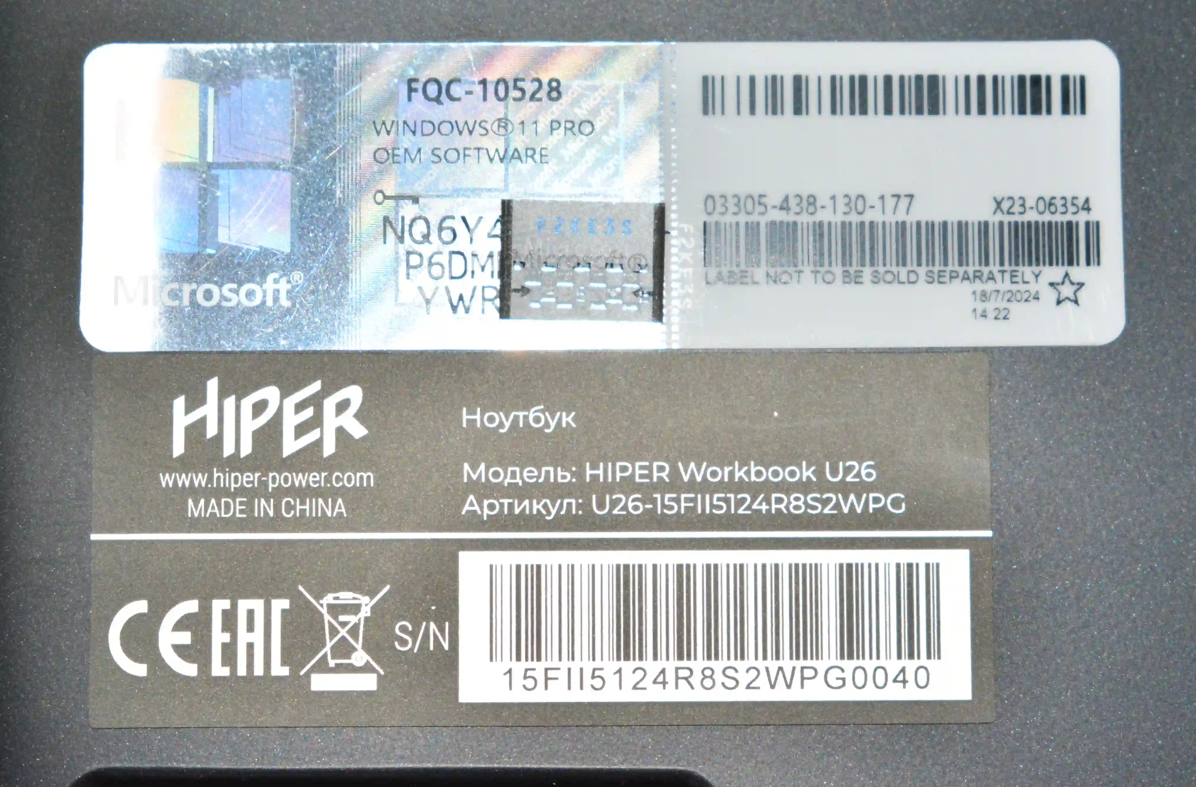 Ноутбук HIPER Workbook U26 15.6" (U26-15FII5124R8S2WPG) k4 000083578