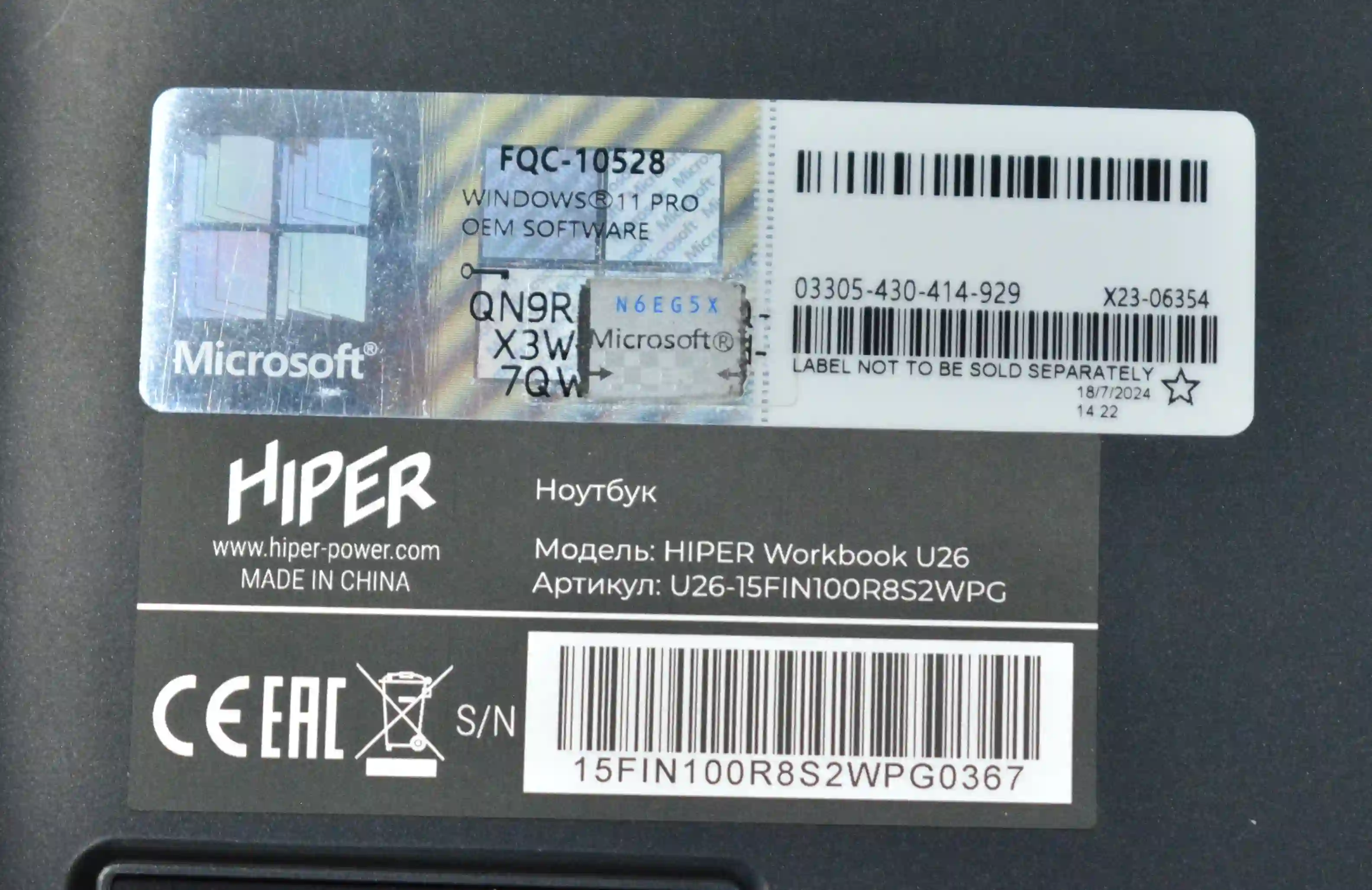 Ноутбук HIPER Workbook U26 15.6" (U26-15FIN100R8S2WPG) k4 000065831