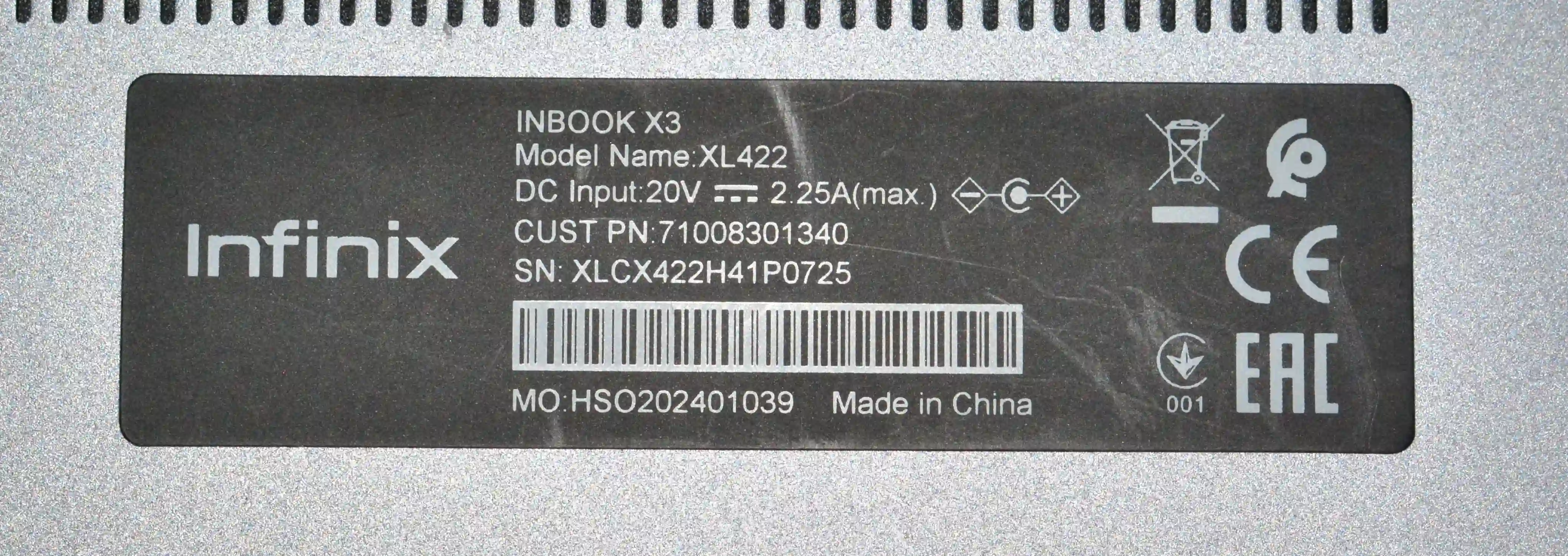 - Серия устройства: Infinix Inbook X3