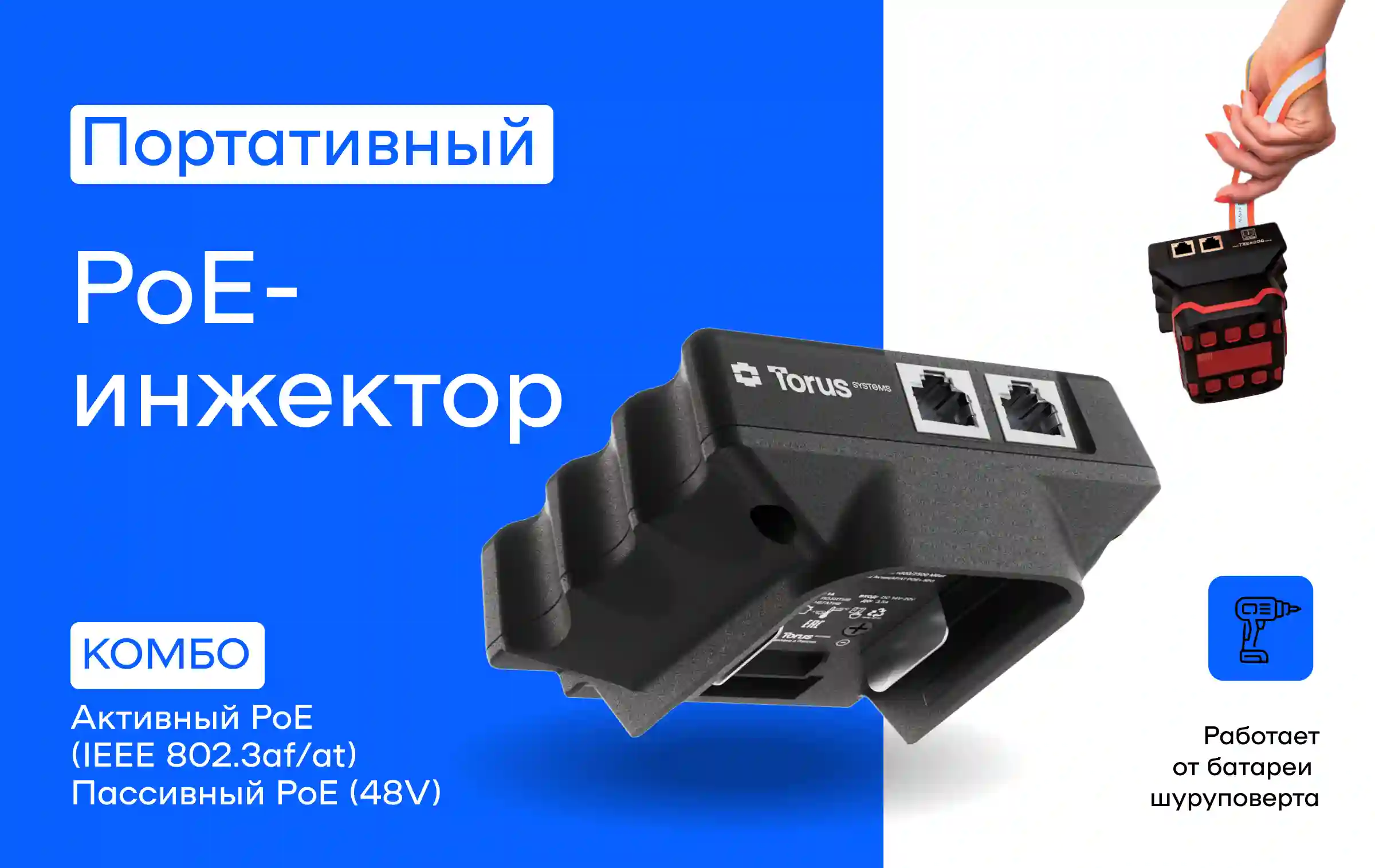 Портативный PoE-инжектор КОМБО TORUS PITBM-C (Bosch/Makita)