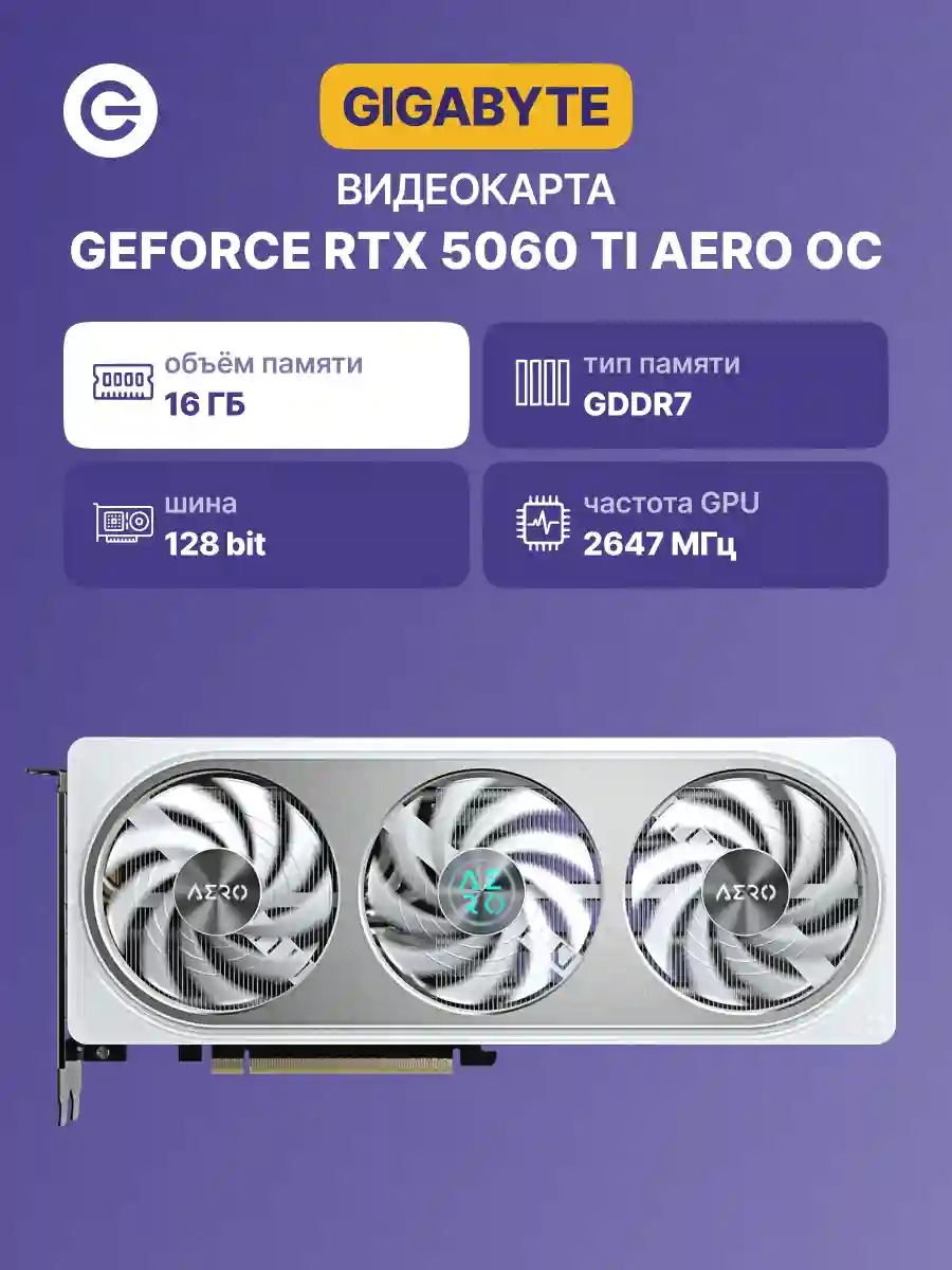 Видеокарта GIGABYTE GeForce RTX 5060 Ti Aero OC 16G (GV-N506TAERO OC-16GD)
