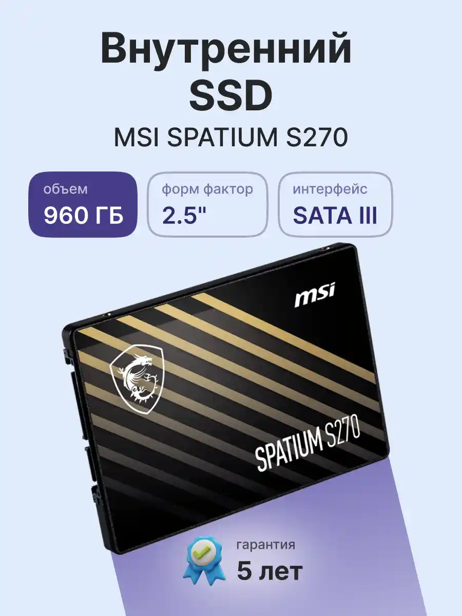 Внутренний SSD диск MSI Spatium S270 960GB, SATA3 (S78-440P130-P83)