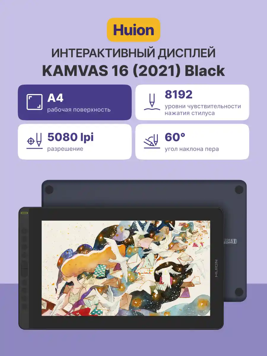 Интерактивный дисплей HUION Kamvas 16 (2021) Black