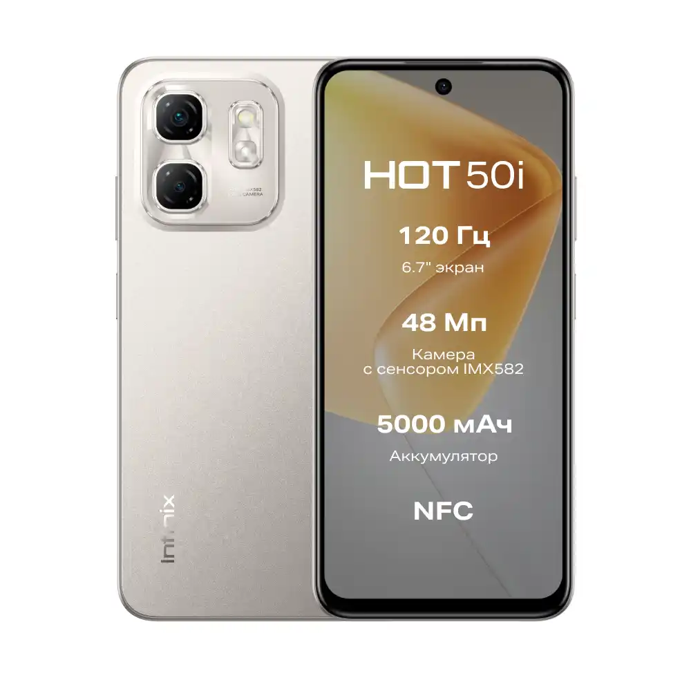 Смартфон Infinix HOT 50i — это современное и доступное устройство, которое сочетает в себе большой экран, вместительное хранилище и ключевые функции для комфортного использования в повседневной жизни. Он идеально подходит для тех, кто ищет надежный гаджет для общения, развлечений и решения базовых задач без лишних затрат.