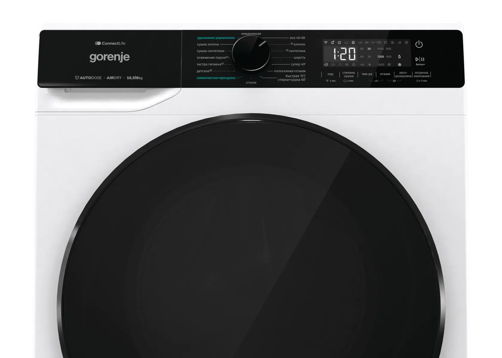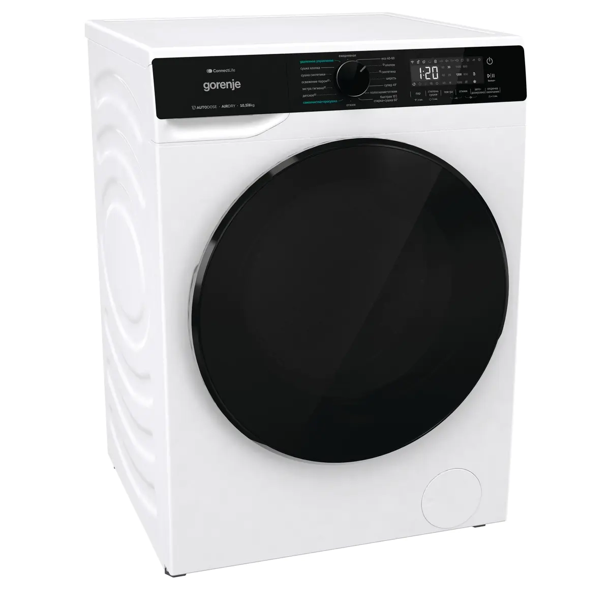 Прибор обладает вместительным барабаном, что позволяет стирать до 10.5 кг белья за раз и сушить до 6 кг. Это делает ее идеальным выбором для больших семей или тех, кто предпочитает делать стирку реже, но большими партиями.