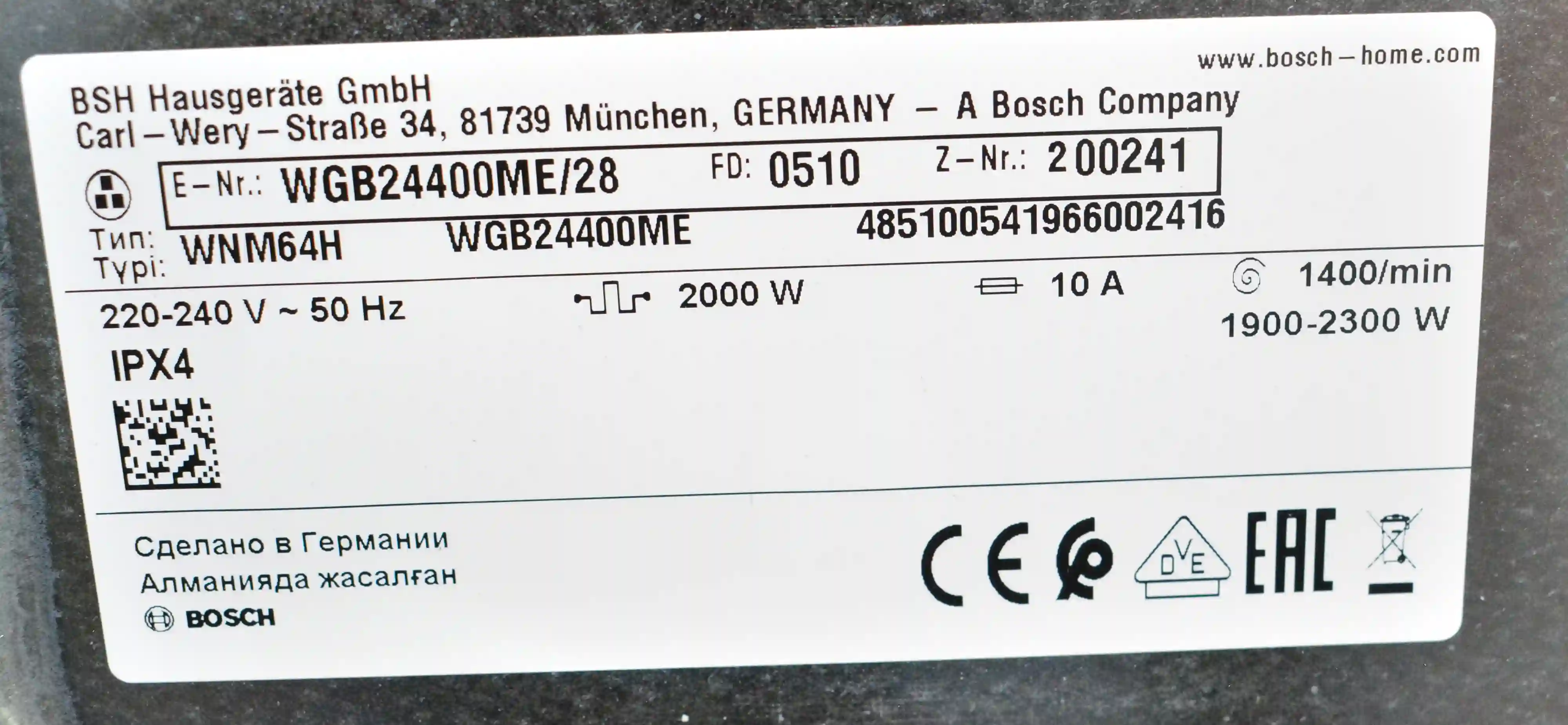 Все эти особенности делают стиральную машина Bosch WGB24400ME идеальным выбором для тех, кто ценит качество, эффективность и стиль.