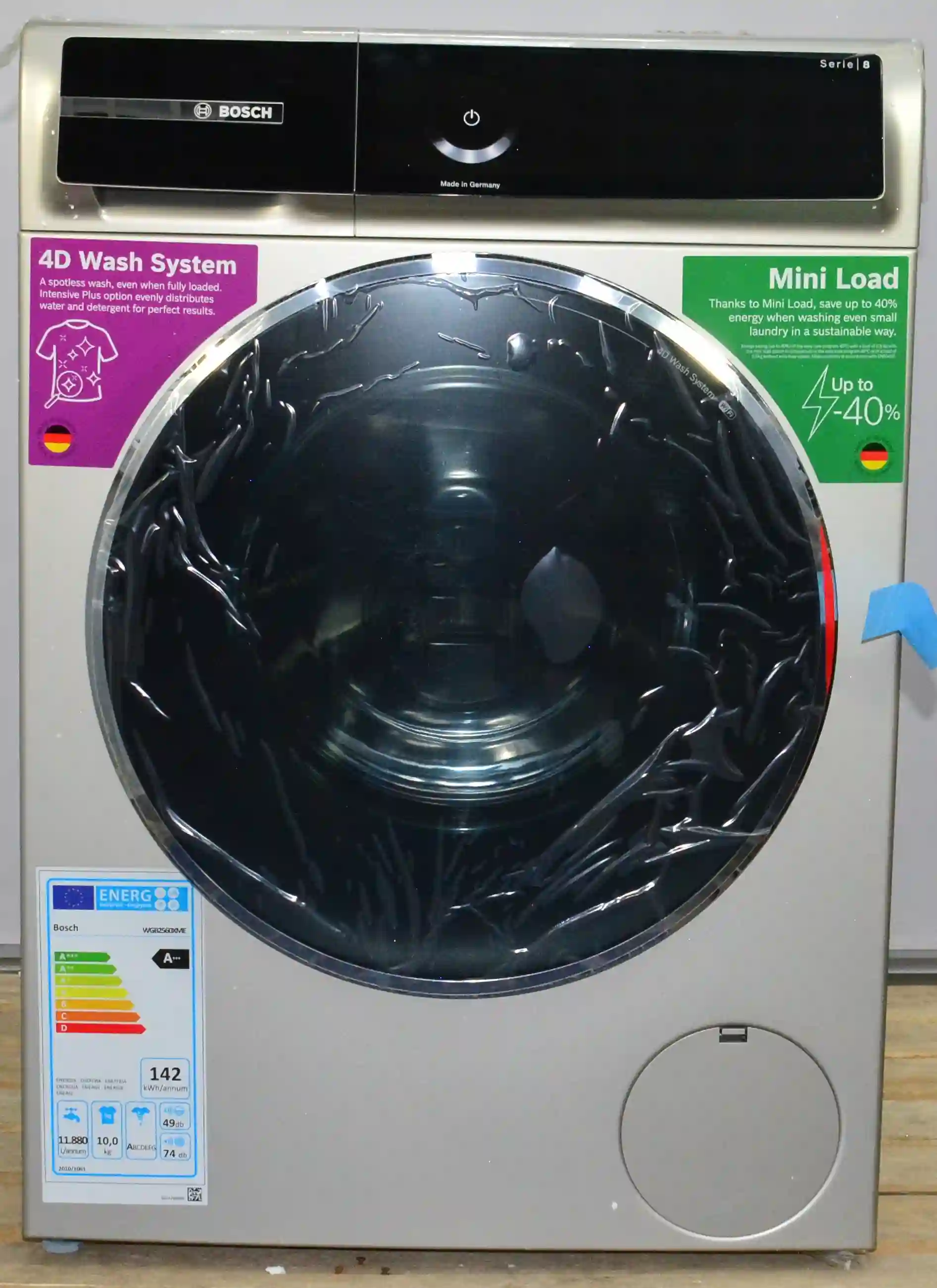 8-Series,полноразмерная стиральная машина,загрузка 10кг, 1600 об/мин.,габариты:845 x 598 x 590 мм., мотор EcoSilence Drive, 4D Wash System,Easy Start Guide,AquaStop®, цвет Silver Inox