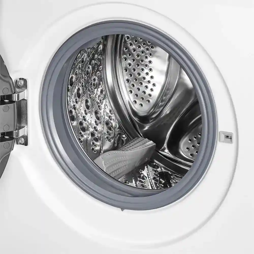 Машина оснащена инверторным двигателем с прямым приводом, что обеспечивает тихую и стабильную работу. Бак и барабан изготовлены из нержавеющей стали, что гарантирует долговечность и надёжность.
