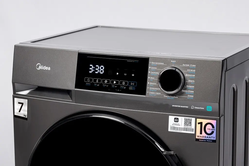 Машина предлагает 15 программ, включая стирку с паром, антиаллергенный режим, предварительную стирку, дополнительное полоскание и турбо-режим для быстрой обработки белья. Это позволяет подобрать оптимальные настройки для любого типа ткани — от деликатных до плотных.