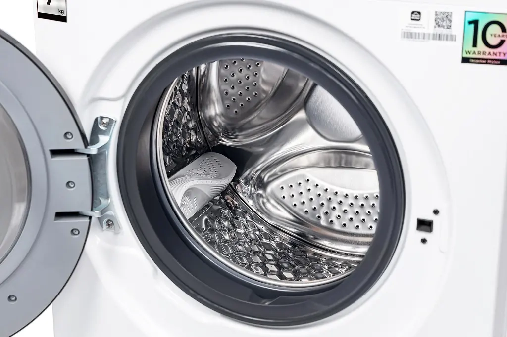 Модель оснащена инверторным мотором, который работает тихо, стабильно и экономично. Максимальная скорость отжима — 1200 об/мин, что помогает белью быстрее высыхать после стирки.