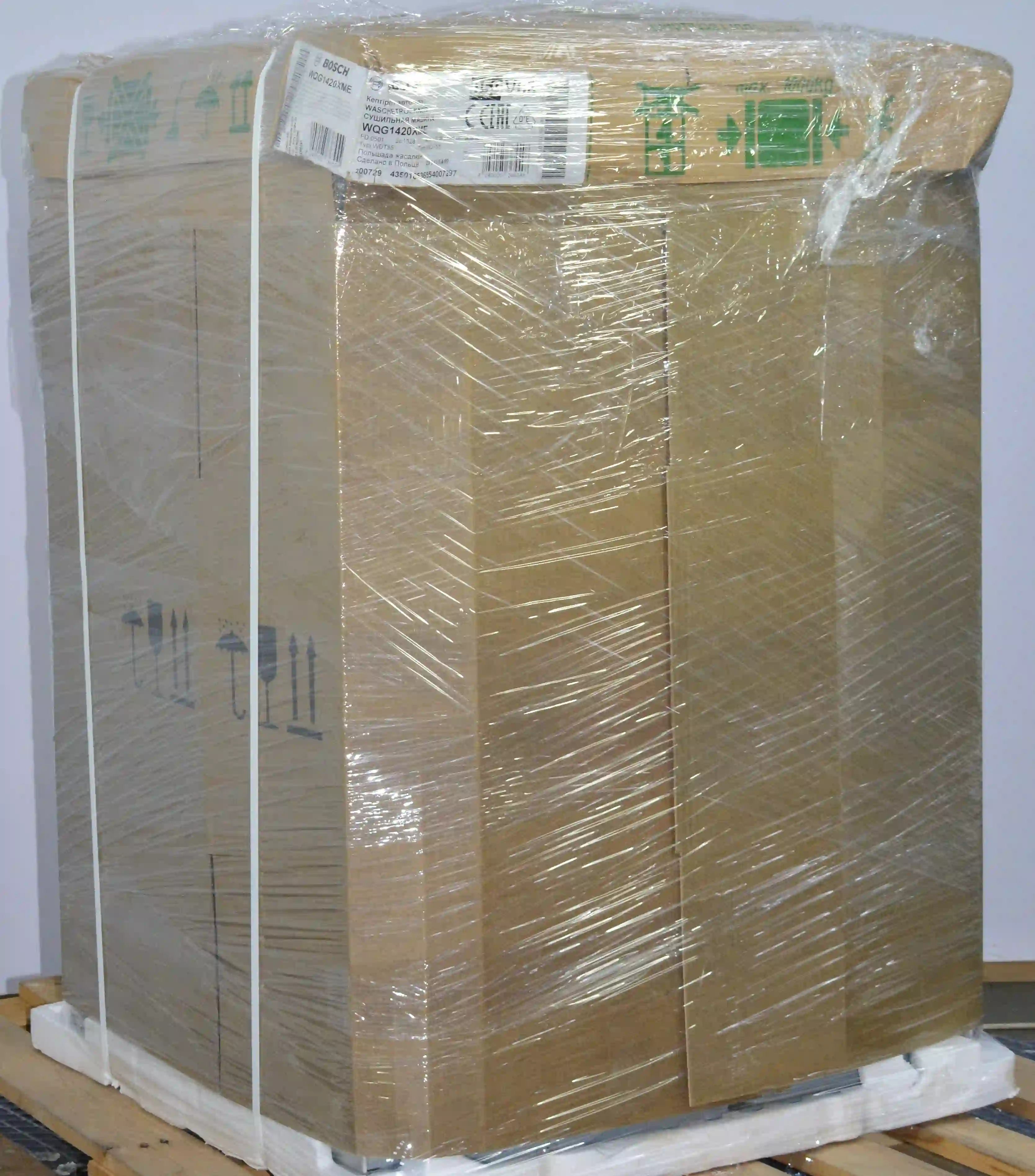 Состояние упаковки: Картонная упаковка закреплена транспортировачной лентой, пупырчатая пленка, стрейч пленка