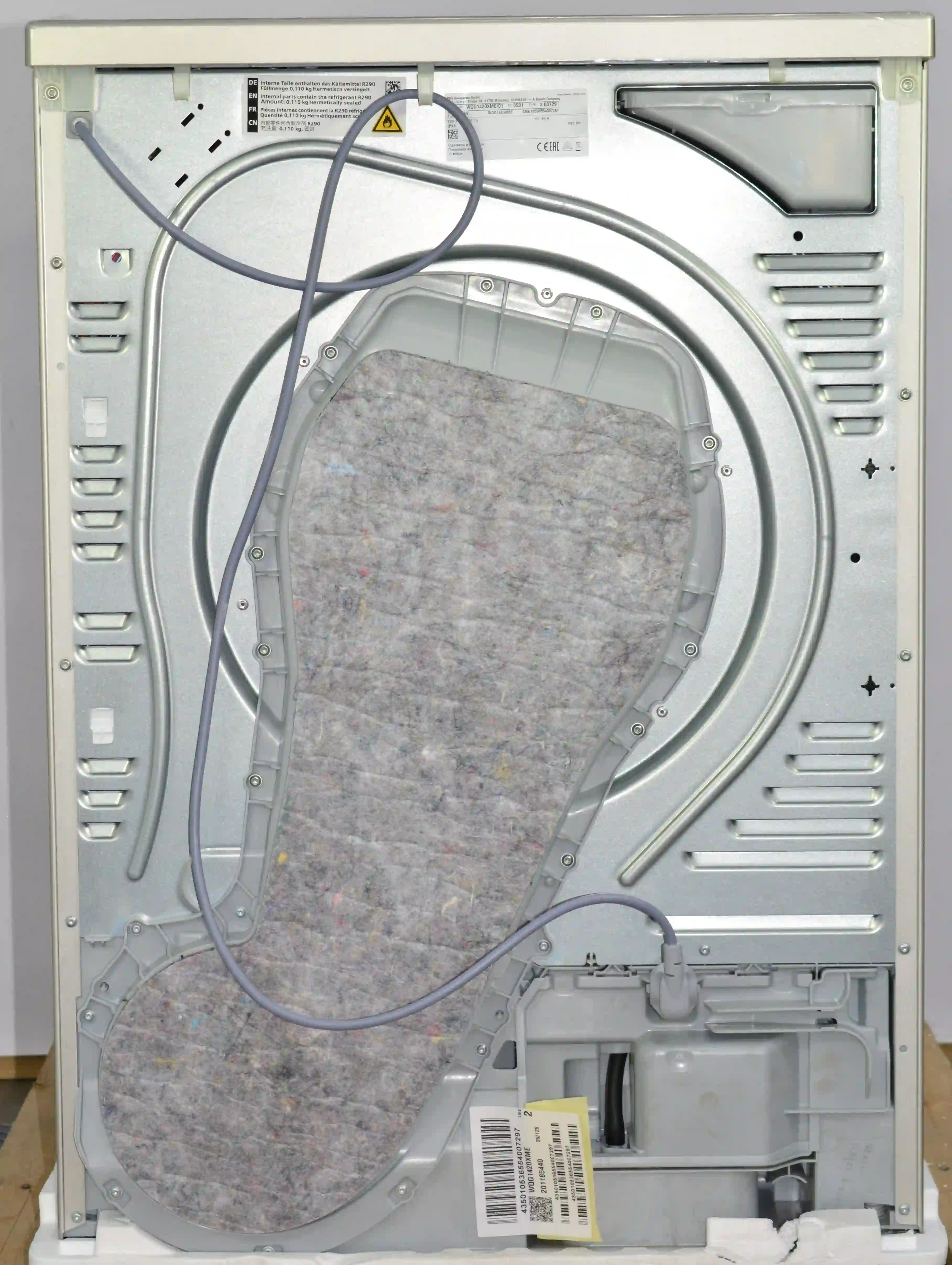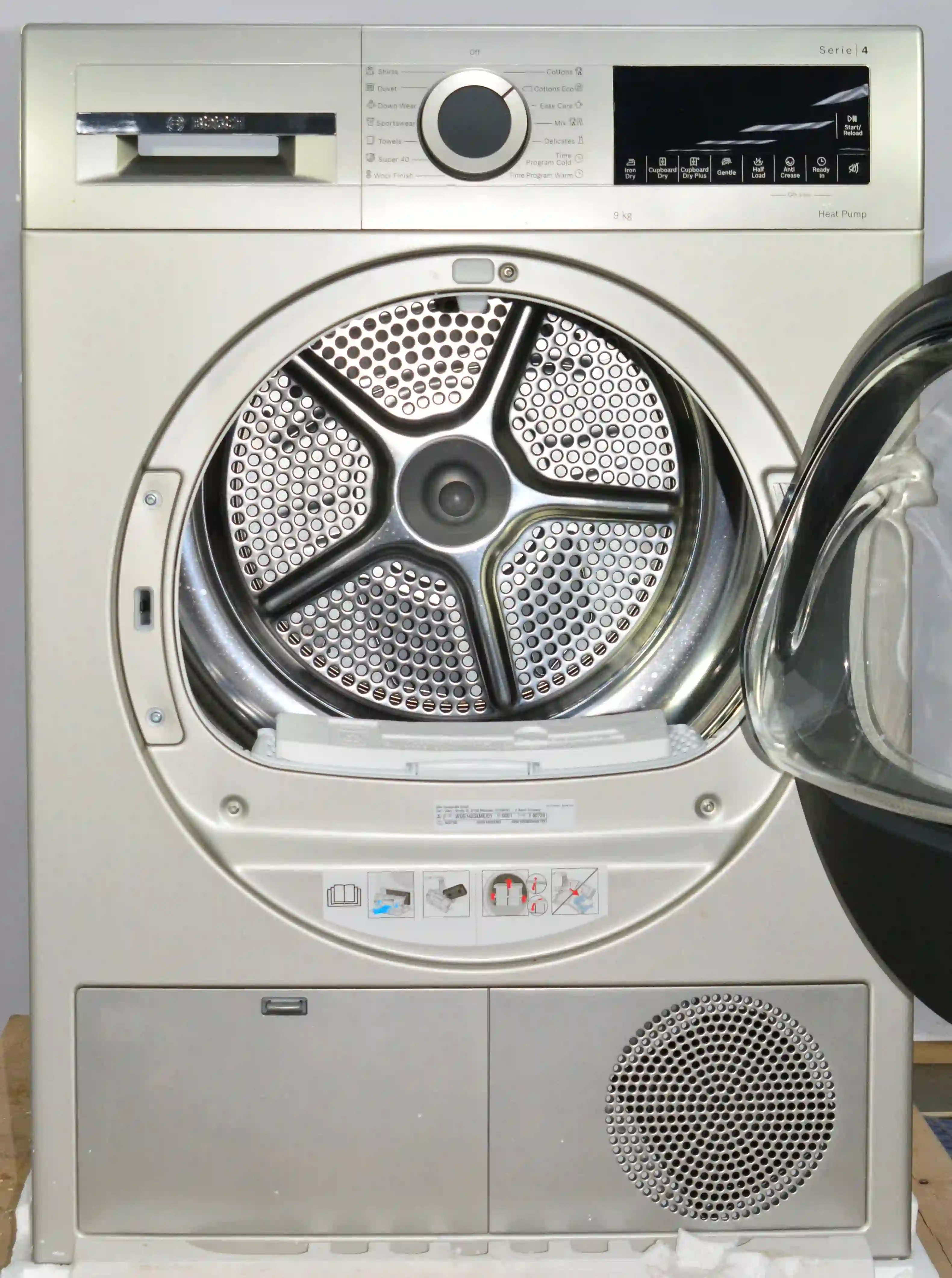 Сушильная машина Bosch Serie 4 WQG1420XME оснащена дизайном AntiVibration, боковые стенки предотвращает вибрацию. Имеется индикация заполнения резервуара для конденсата и ворса. Блокировка от детей предотвращает случайное нажатие на панели устройства.