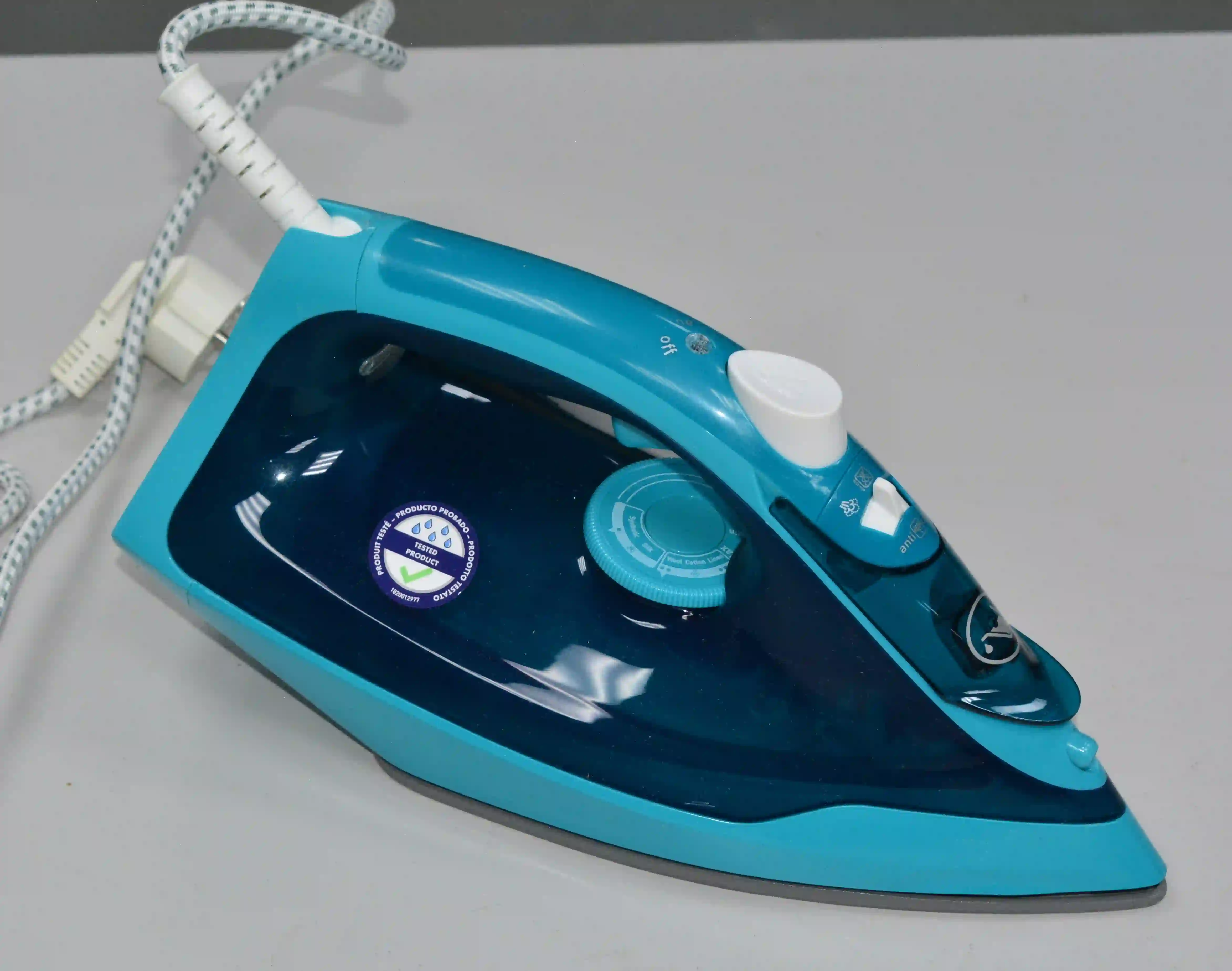 Утюг оснащен системой автоматического отключения, которая срабатывает, если прибор оставлен без движения в горизонтальном положении (через 30 секунд) или в вертикальном (через 8 минут). Эта функция обеспечивает полную безопасность и спокойствие, особенно в доме с детьми. Технология «Анти-капля» (Капля-стоп) предотвращает протекание и появление пятен на одежде при глажении на низких температурах, блокируя подачу воды до момента образования пара.