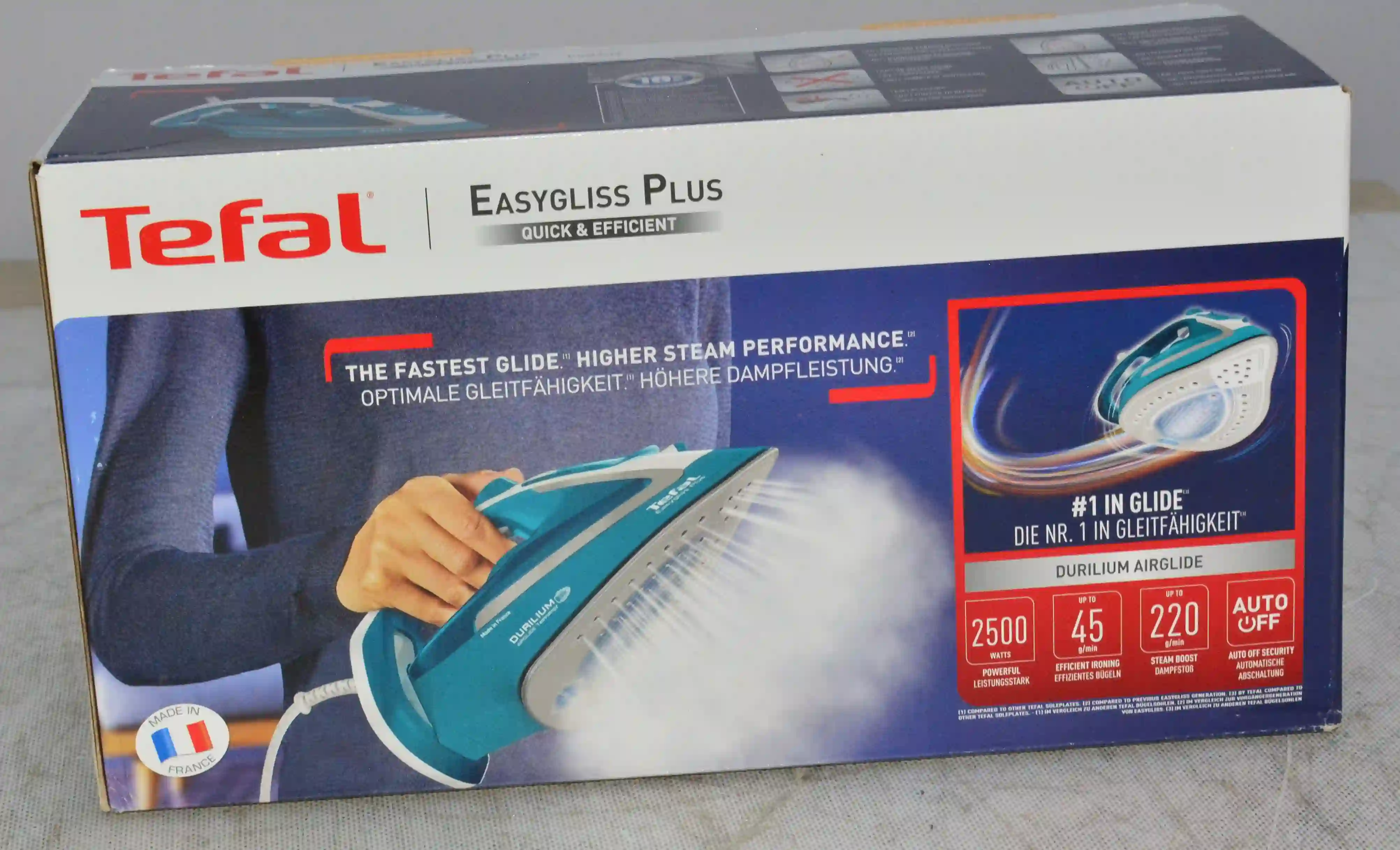 • Мощный пар: Благодаря мощности 2500 Вт утюг быстро нагревается и предоставляет сильную подачу пара (45 г/мин), что позволяет легко разглаживать даже самые упрямые складки.