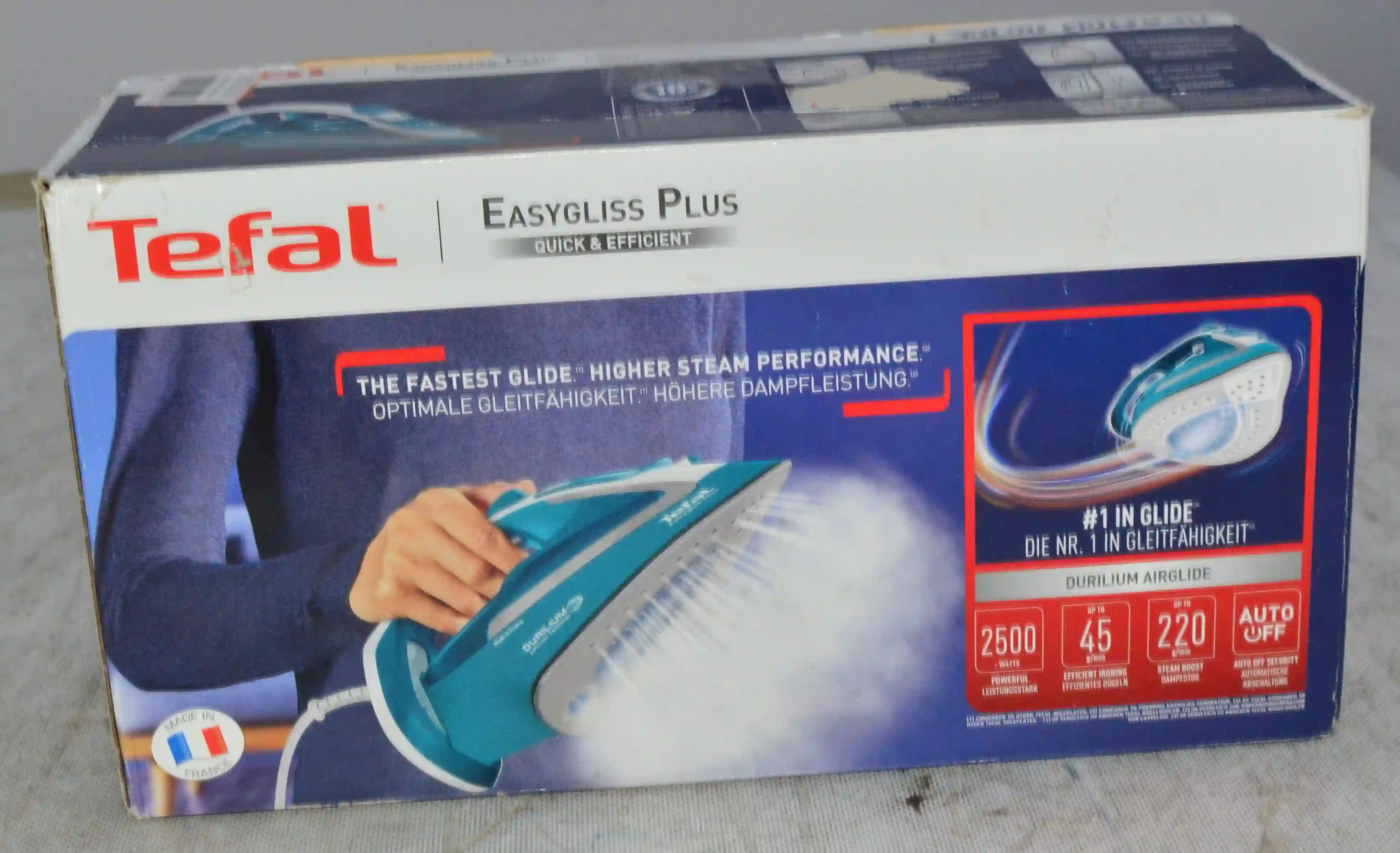 • Мощный пар: Благодаря мощности 2500 Вт утюг быстро нагревается и предоставляет сильную подачу пара (45 г/мин), что позволяет легко разглаживать даже самые упрямые складки.