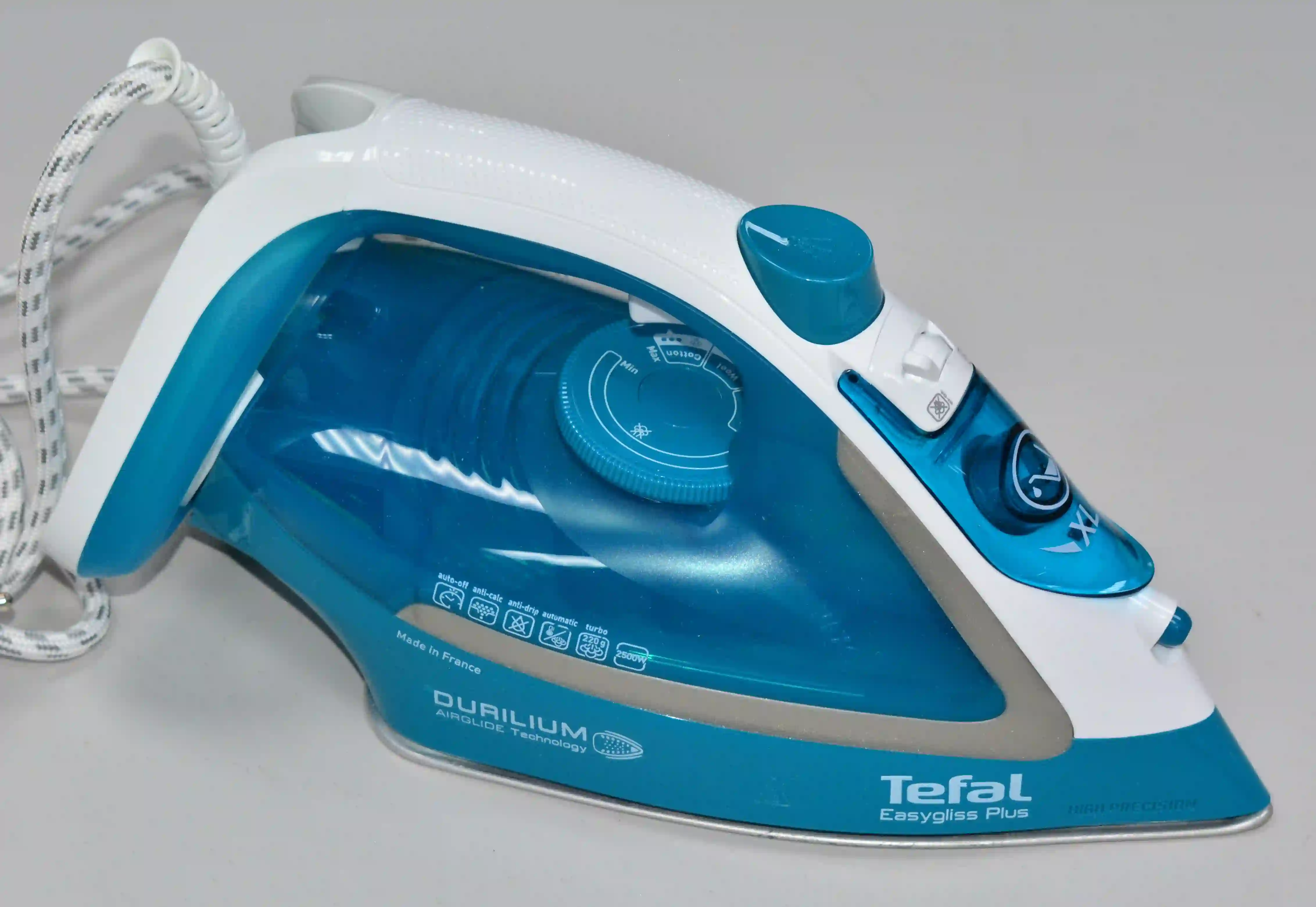 Этот стильный бирюзовый утюг Tefal станет незаменимым помощником в вашем доме. Он обладает впечатляющими характеристиками, которые облегчат процесс глажки и сделают его более эффективным: