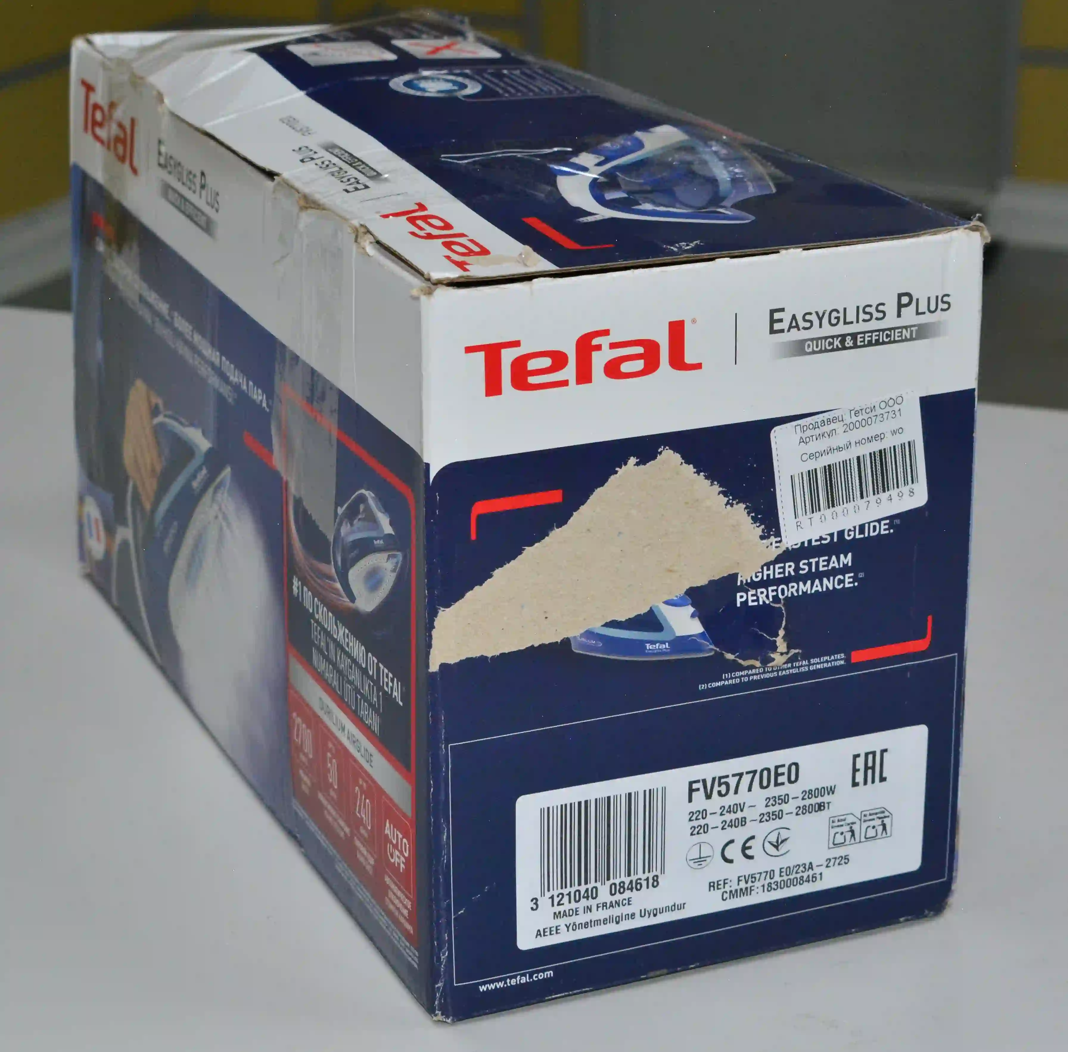 Состояние товара: сломан пластик на подставке,деформация на гладильной поверхности(замят нос)