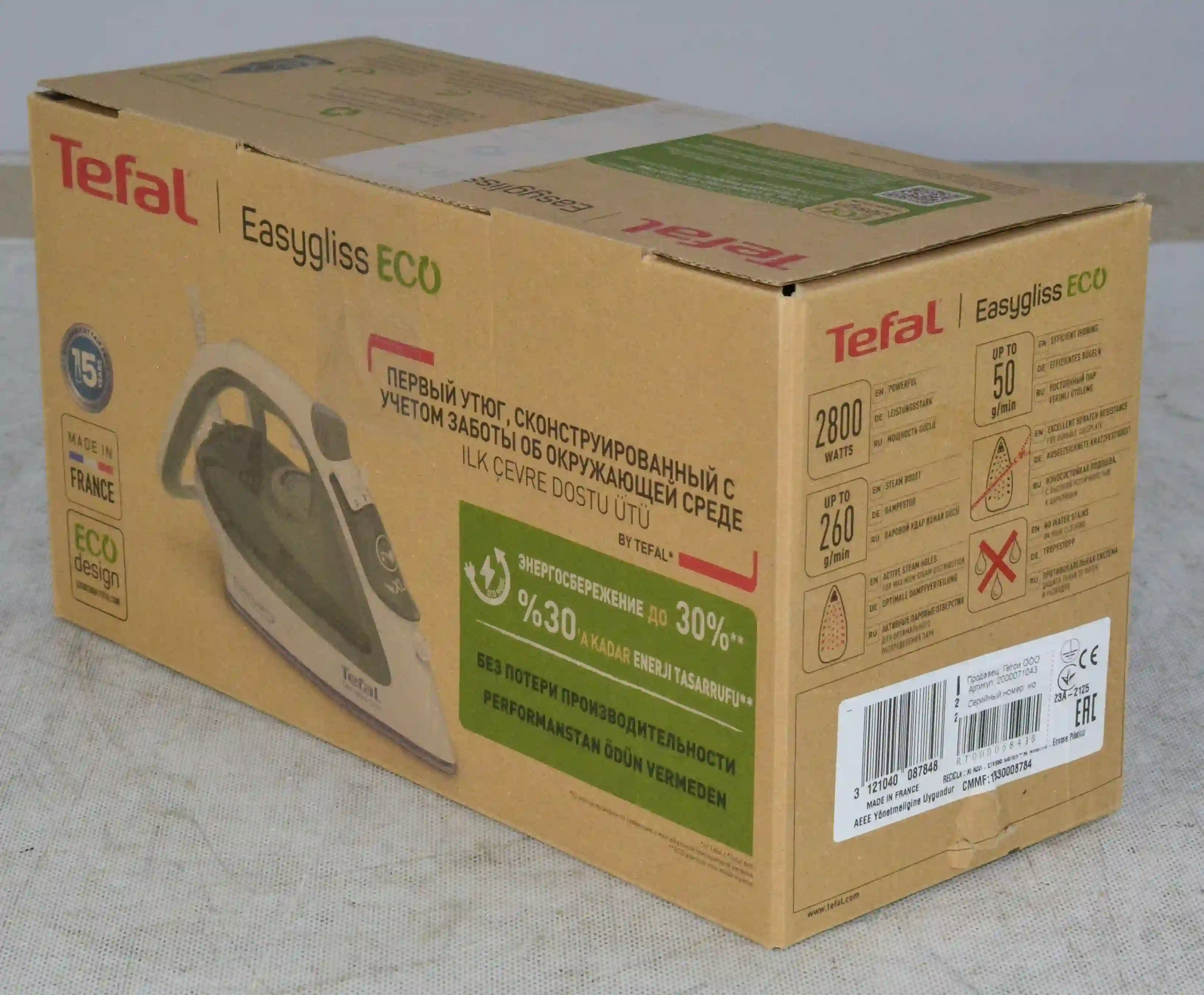 Tefal Easygliss Eco FV5781E1 - это простой и эффективный паровой утюг, предназначенный для комфортной глажки разных тканей. Он отличается мощным паровым ударом, удобной подошвой и широким набором функций, что делает его отличным выбором для ежедневного использования.