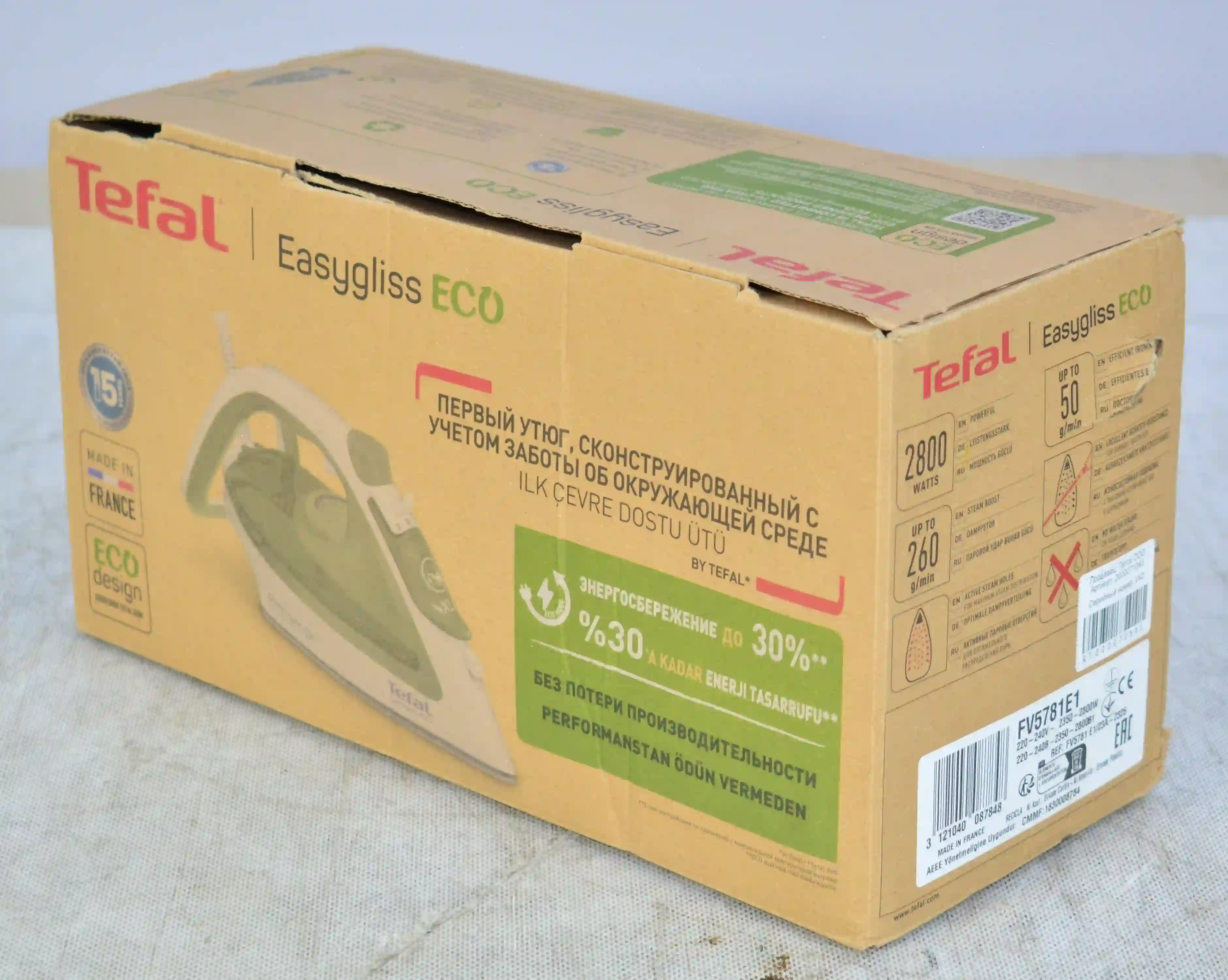 Tefal Easygliss Eco FV5781E1 - это простой и эффективный паровой утюг, предназначенный для комфортной глажки разных тканей. Он отличается мощным паровым ударом, удобной подошвой и широким набором функций, что делает его отличным выбором для ежедневного использования.