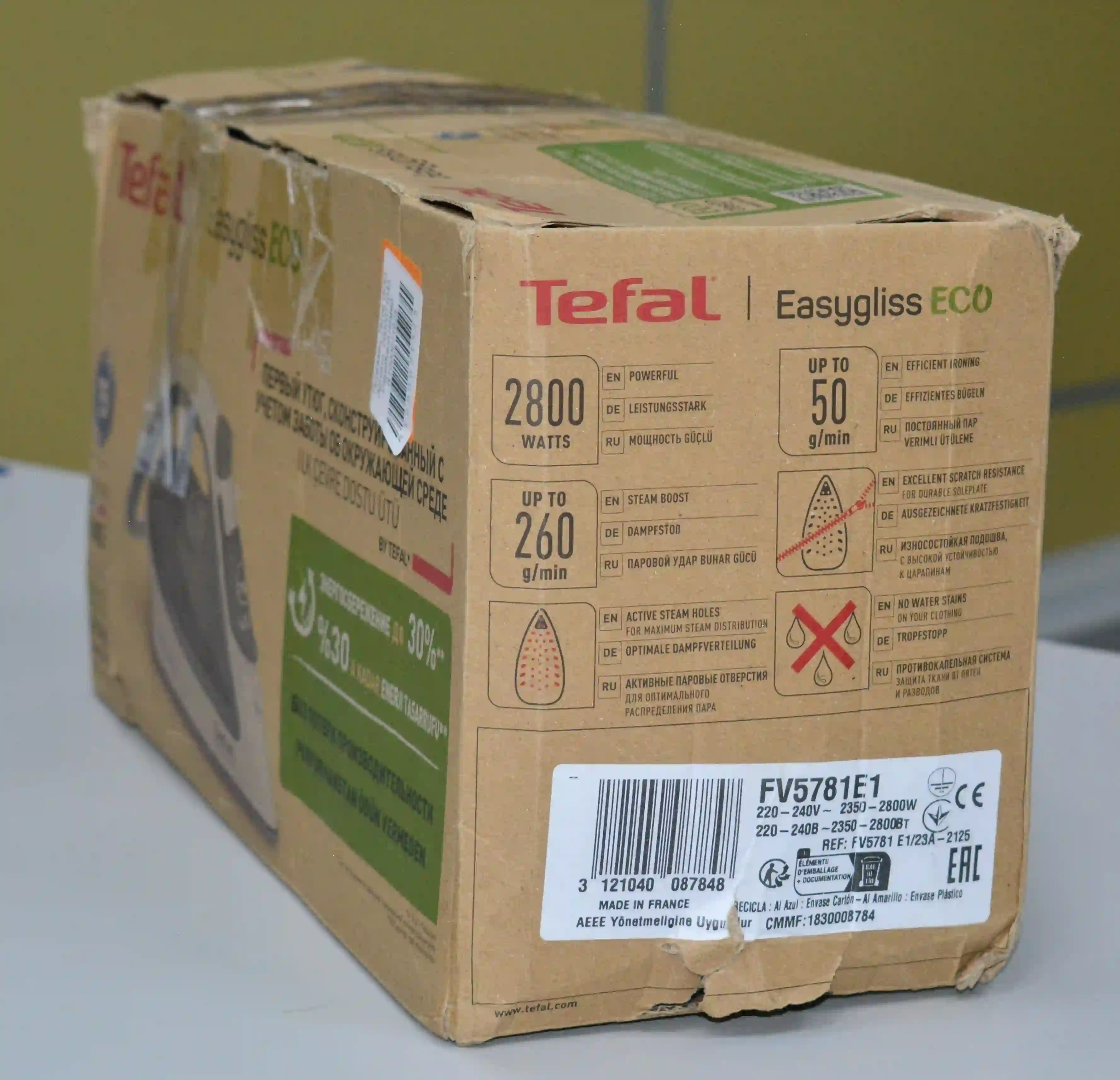 Tefal Easygliss Eco FV5781E1 - это простой и эффективный паровой утюг, предназначенный для комфортной глажки разных тканей. Он отличается мощным паровым ударом, удобной подошвой и широким набором функций, что делает его отличным выбором для ежедневного использования.