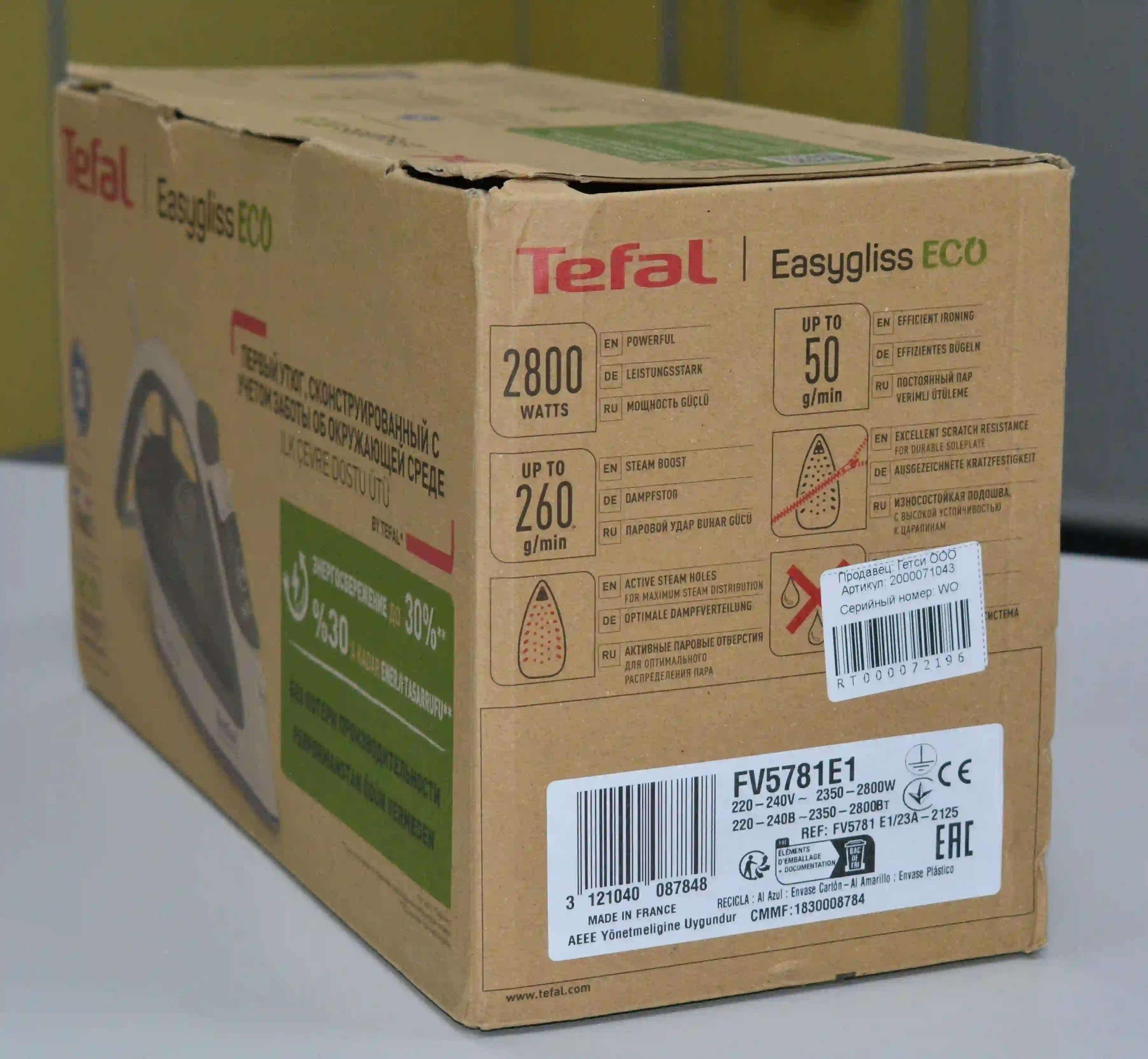 Tefal Easygliss Eco FV5781E1 - это простой и эффективный паровой утюг, предназначенный для комфортной глажки разных тканей. Он отличается мощным паровым ударом, удобной подошвой и широким набором функций, что делает его отличным выбором для ежедневного использования.