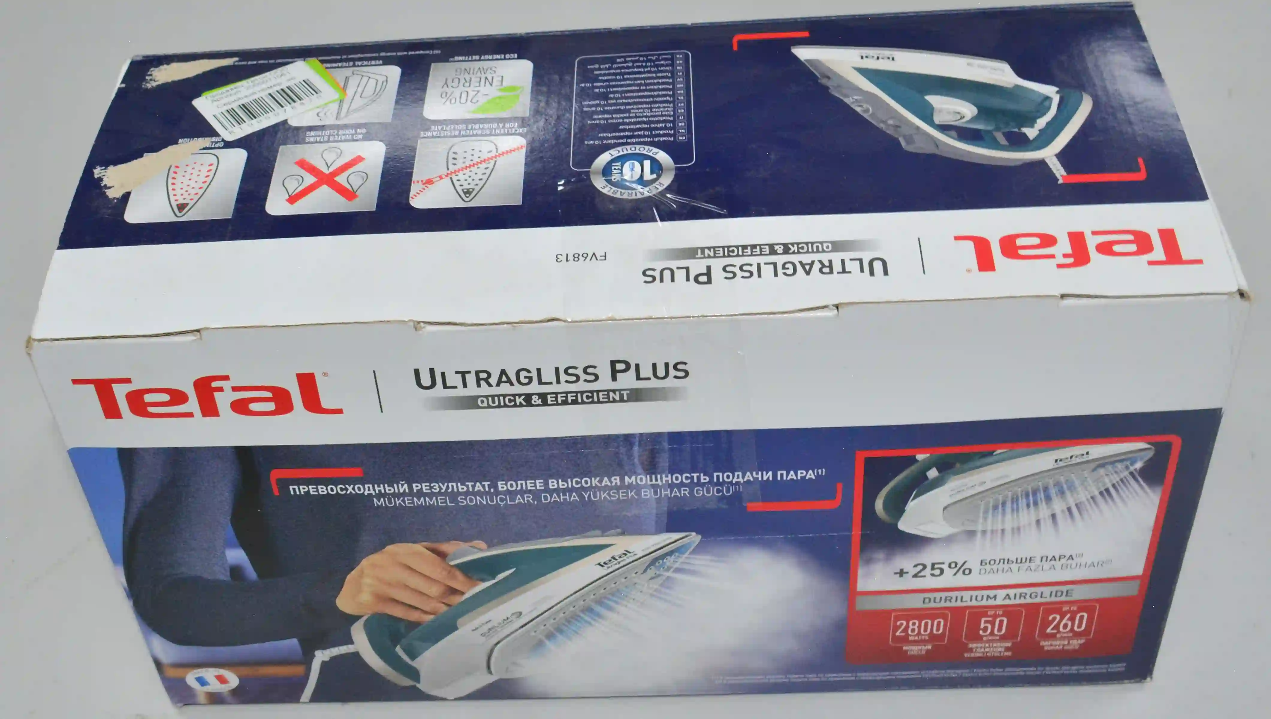 Tefal Ultragliss Plus FV6813E0 - это мощный паровой утюг, предназначенный для эффективной и комфортной глажки различных тканей. Он отличается улучшенной системой парообразования и прочной подошвой, которая гарантирует отличные результаты глажки день за днем.