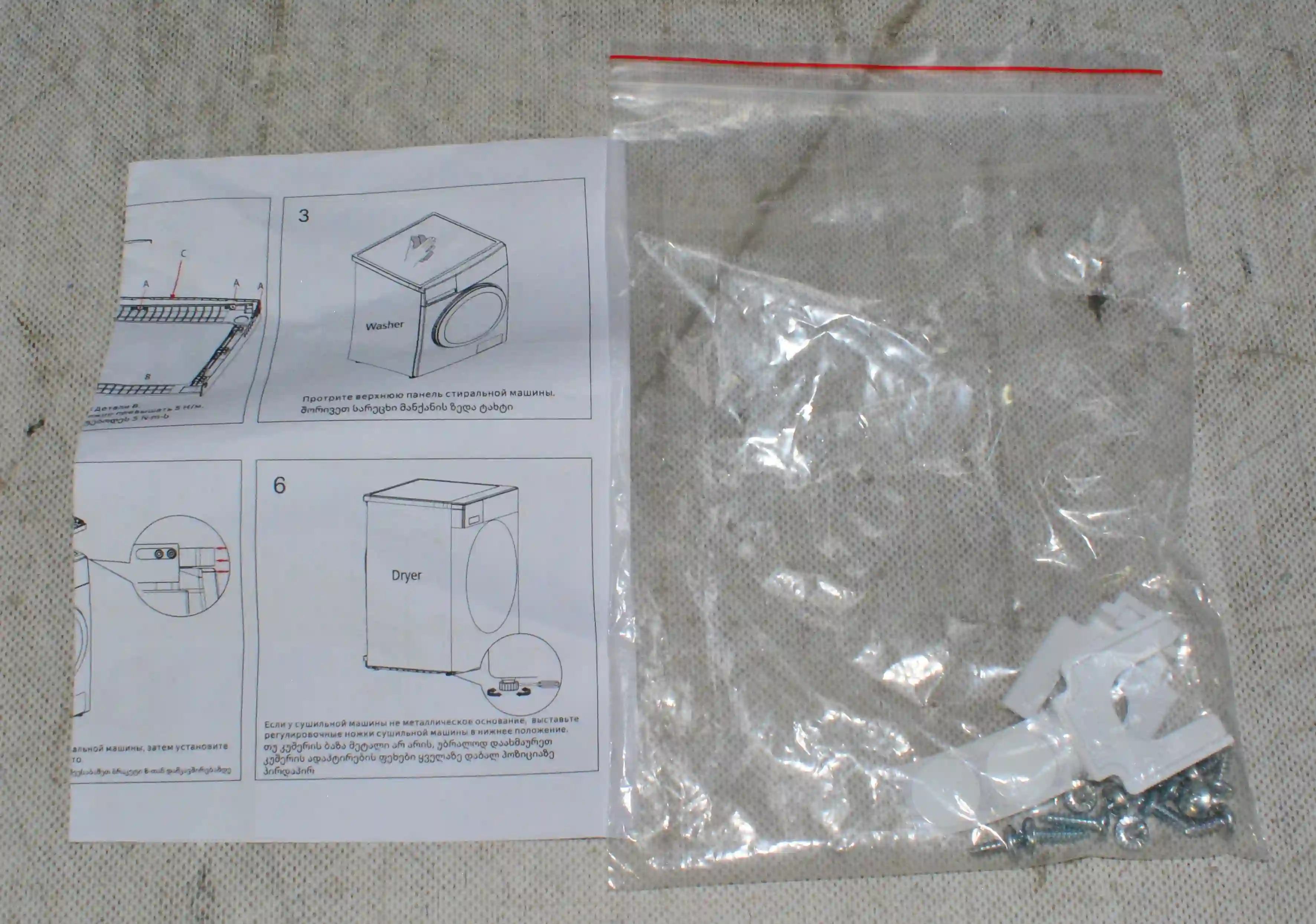Соединительный элемент изготовлен из высококачественного прочного пластика, который выдерживает значительные нагрузки и вес бытовой техники. Такой материал обеспечивает долгий срок службы аксессуара, устойчив к деформации и износу, а также не боится воздействия влажности, что характерно для помещений, где устанавливается стиральная машина.