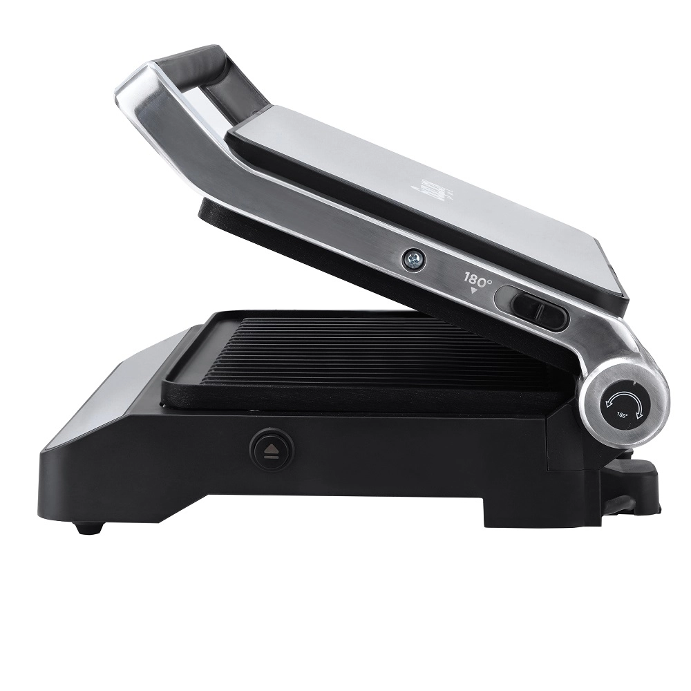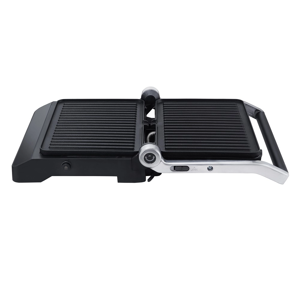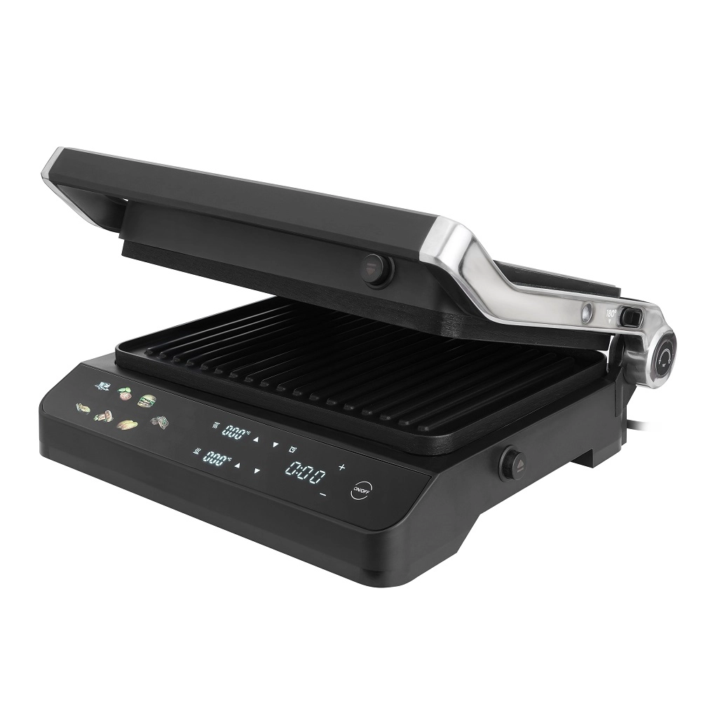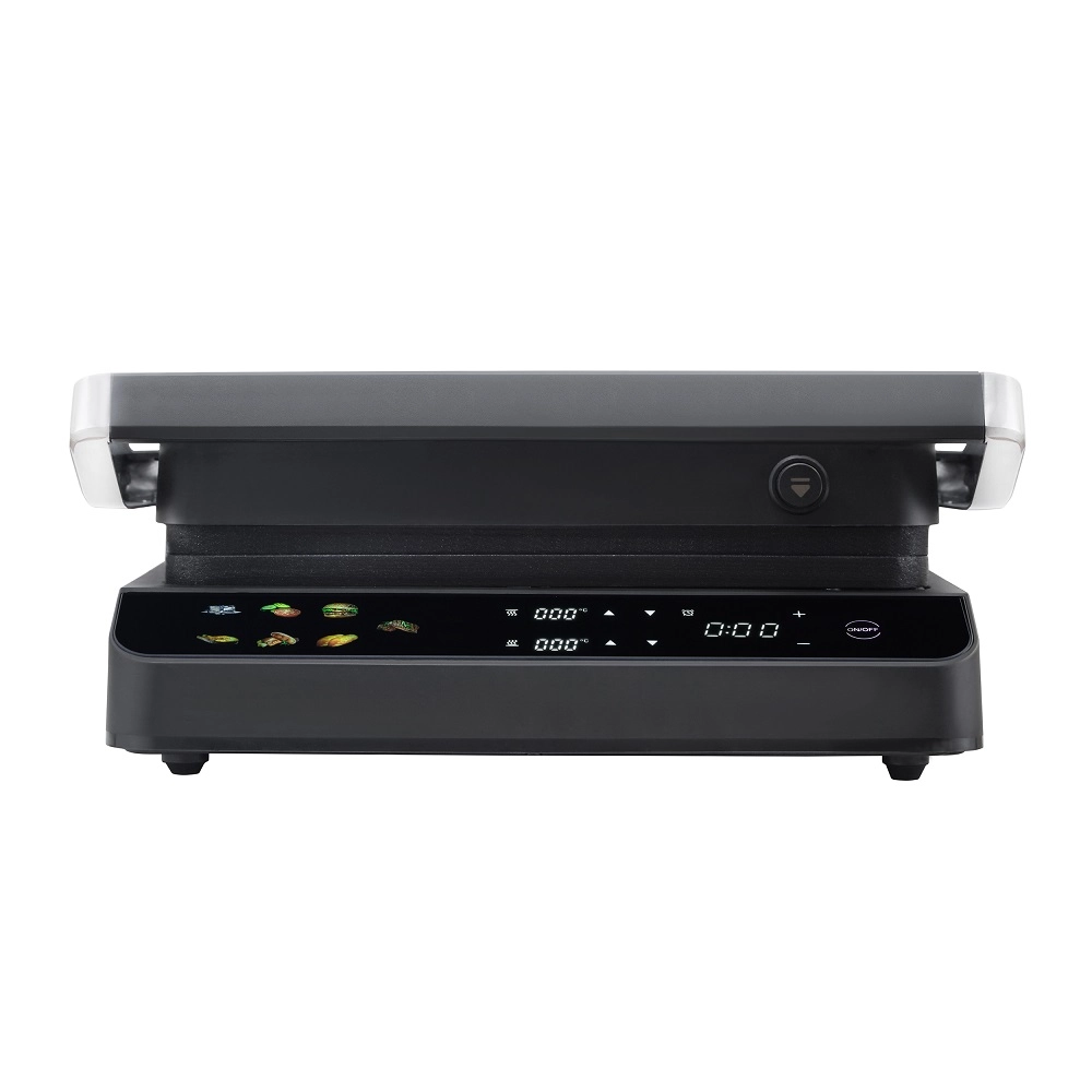Конструкция гриля продумана до мелочей для вашего комфорта. Рабочие панели раскрываются на 180 градусов, что значительно упрощает загрузку продуктов и последующую очистку прибора. Важной особенностью является раздельная регулировка температуры верхней и нижней панелей, что позволяет одновременно готовить разные компоненты блюда, точно контролируя процесс и не смешивая ароматы. Съемные панели из литого алюминия с антипригарным покрытием EcoDeff не только обеспечивают равномерный нагрев, но и легко моются, в том числе и в посудомоечной машине.