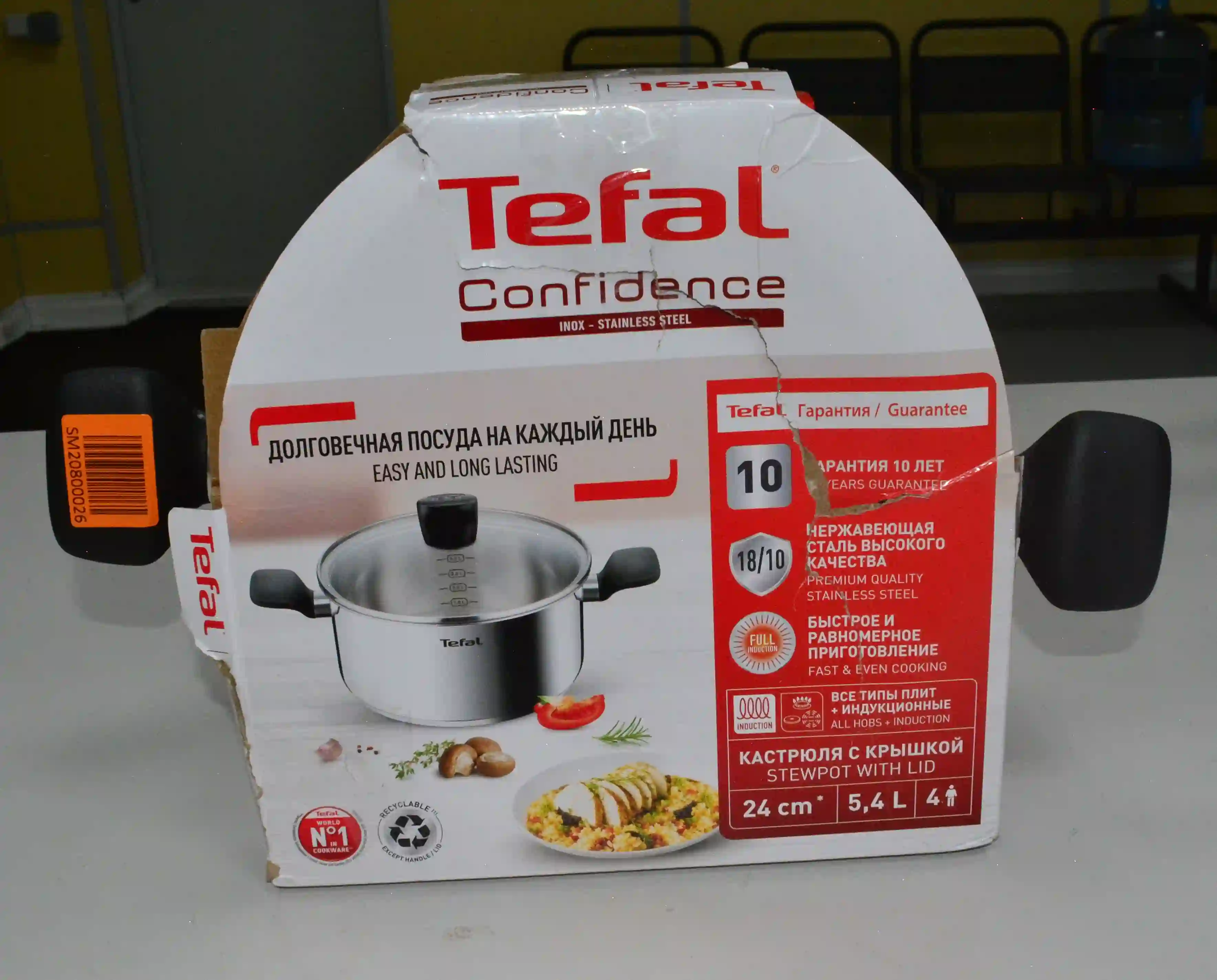 Состояние товара: вмятина и грязь на нижней части корпуса кастрюли