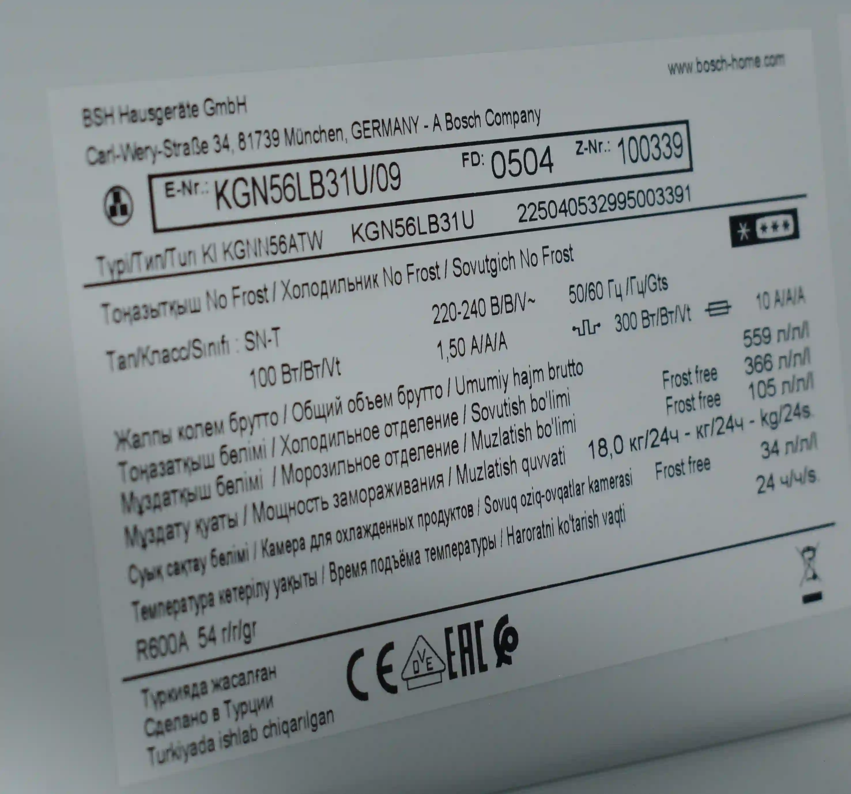 - Полезный объем холодильной камеры: 417