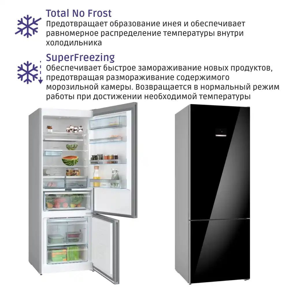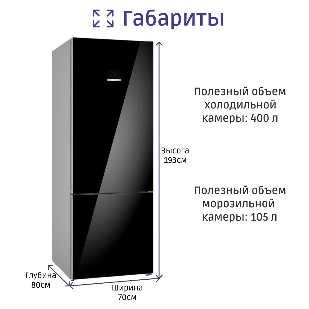 Холодильник Bosch Serie 6 — это стильное и функциональное сердце любой кухни, идеально сочетающее современные технологии и элегантный дизайн. Он предлагает внушительный общий объем в 559 литров, из которых 417 литров отведено под холодильное отделение и 142 литра — под морозильное. Это делает его отличным выбором для больших семей или тех, кто любит запасы.