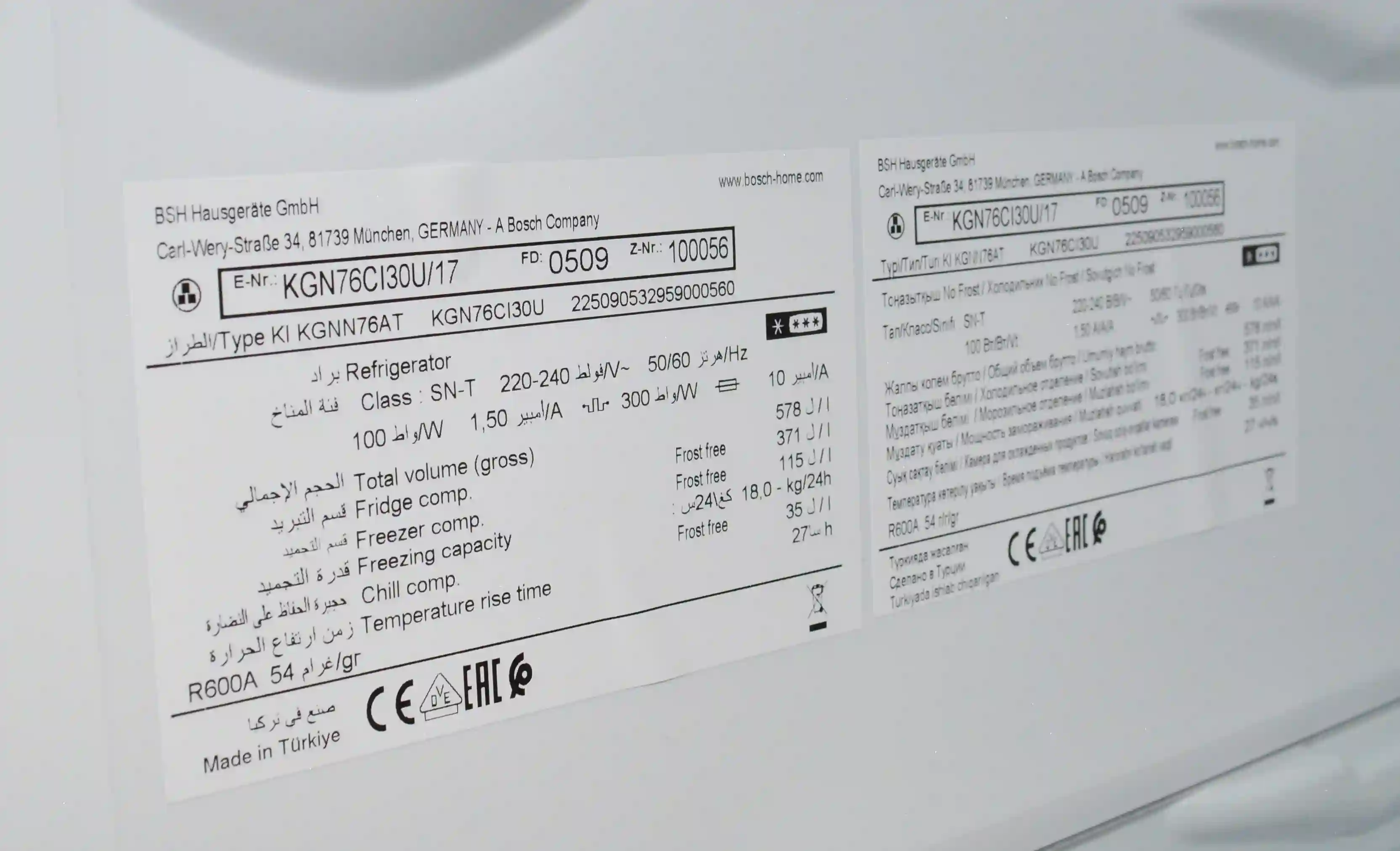 - Общий объем холодильника: 578