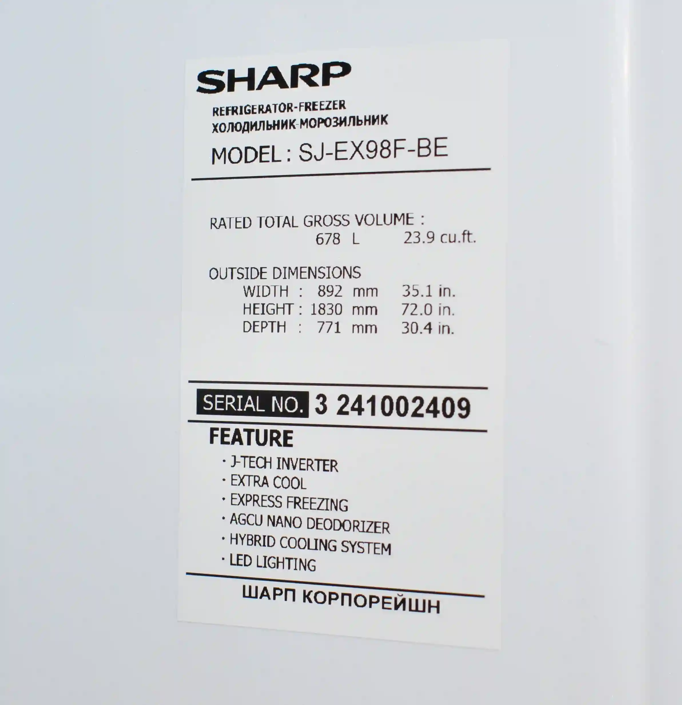 Холодильник SHARP SJ-EX98FBE k8 000072141