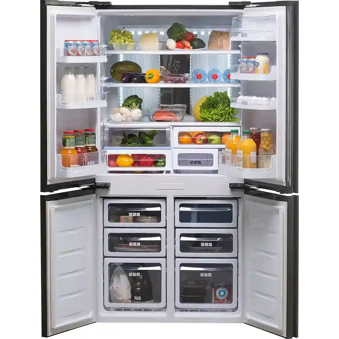 Новая модель 4-дверных холодильников SHARP выполнена в обновленном дизайне и имеет невероятно большой полезный объем 600 литров. Холодильник выполнен в черном цвете с покрытием дверей из безрамочного закаленного стекла с абсолютно ровной глянцевой поверхностью. Большой объем и широкие полки из сверхпрочного закаленного стекла позволяют размещать в холодильной камере посуду шириной до 70 см, например, противень с пирогом, гарантируя максимальное удобство при хранении габаритных блюд или большого количества продуктов. Холодильник оснащен инновационными технологиями качественного и длительного хранения продуктов: уникальная технология Plasmacluster активно деактивирует бактерии и споры грибков плесени в воздухе внутри камер, предотвращая их воздействие на продукты. Гибридная Система Охлаждения совмещает в себе системы Multi Air-Flow и Sushi Panel. Система Multi Air-Flow равномерно распределяет потоки охлажденного воздуха по всему внутреннему пространству холодильника, гарантируя стабильную температуру во всём внутреннем пространстве. Система Sushi Panel помогает поддерживать естественный уровень влажности в холодильной камере, что, в свою очередь, помогает продуктам оставаться свежими максимально долгое время и исключает эффект заветривания. С помощью внешней электронной панели управления, расположенной на уровне глаз, легко управлять настройками температуры в камерах, функциями Быстрое замораживание, Отпуск, Эко-режим. Панель управления можно заблокировать от случайного изменения настроек детьми.