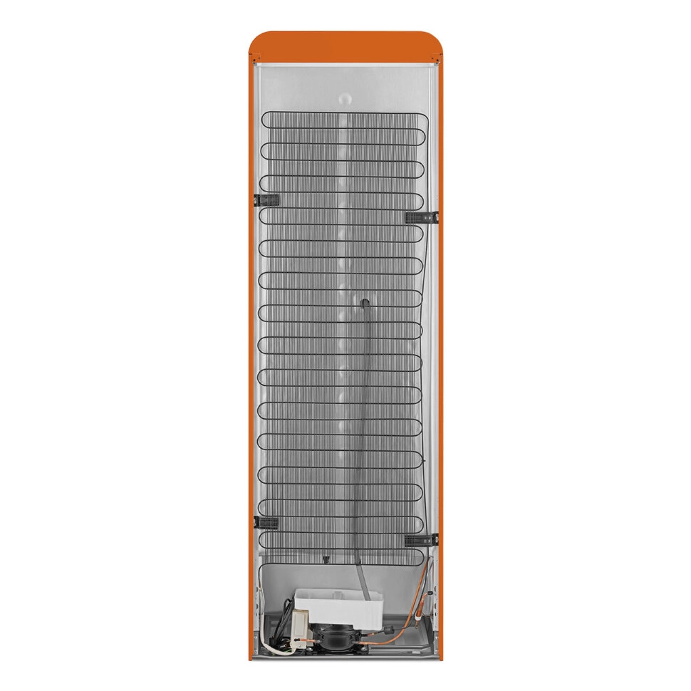 Оформленный в стиле 50-х годов, этот оранжевый холодильник привносит атмосферу ретро, делая его заметным в любом интерьере. Его яркий цвет не только поднимает настроение, но и создает уникальный акцент в вашем кухонном пространстве.