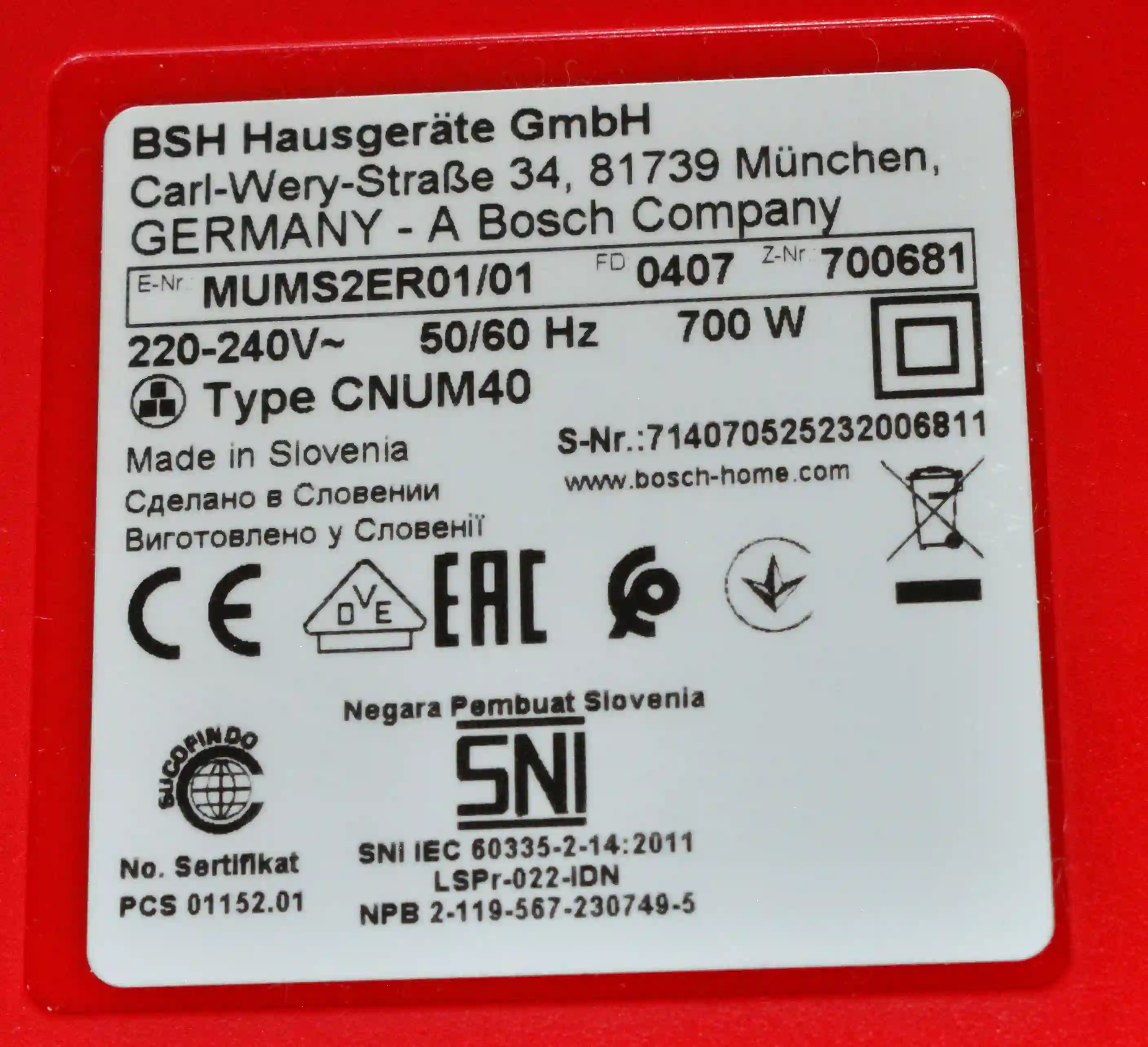 Кухонный комбайн BOSCH MUMS2ER01, красный k8 000065887