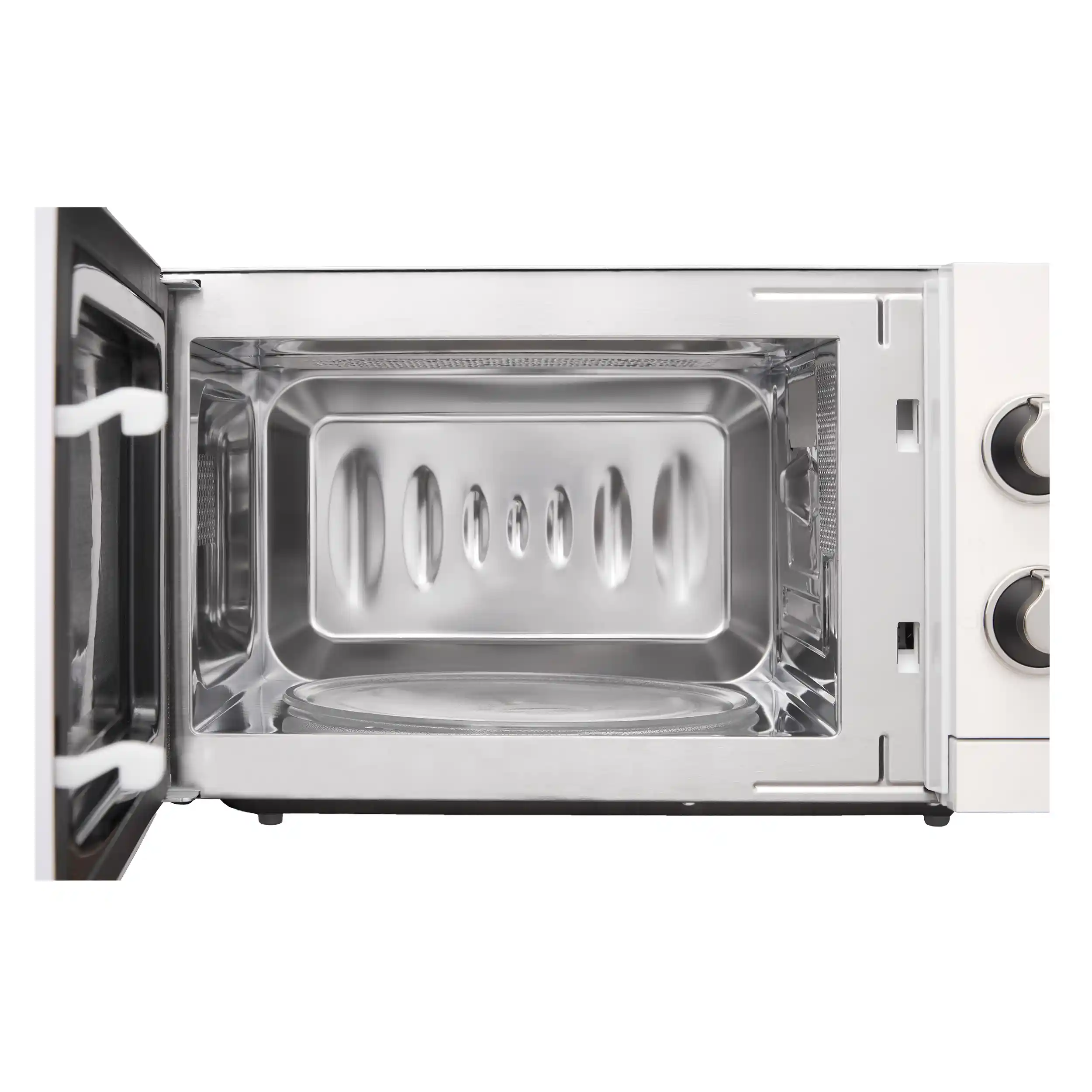 Внутренняя камера оборудована поверхностью из нержавеющей стали, устойчивой к повреждениям. Поворотный стол диаметром 245 миллиметров даёт возможность использовать посуду различных размеров. Система освещения позволяет контролировать процесс приготовления.