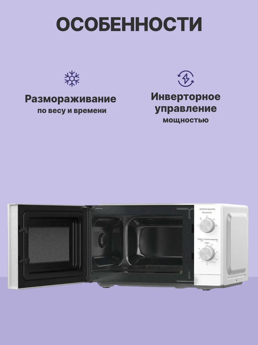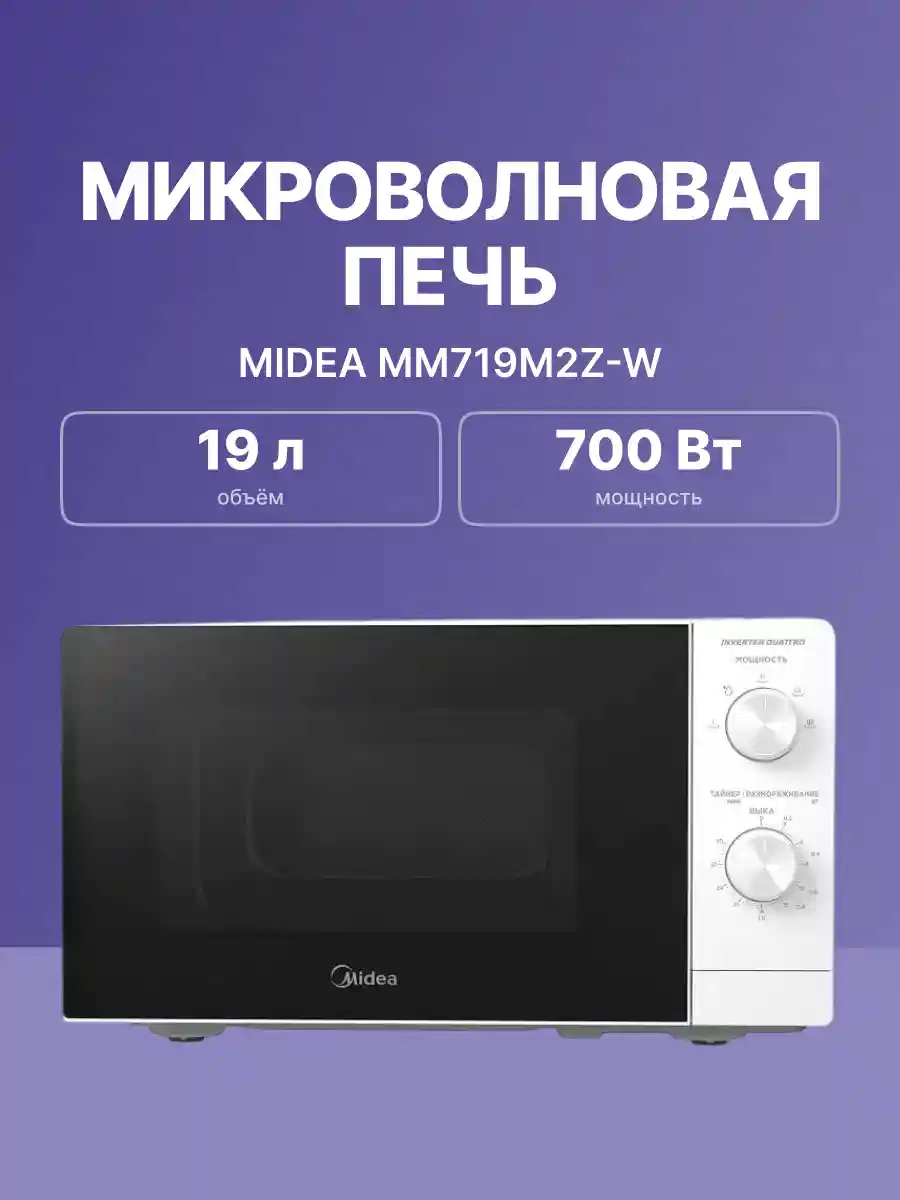 Микроволновая печь Midea MM719M2Z-W — это передовое устройство, предназначенное не только для разогрева, но и для размораживания продуктов по весу.