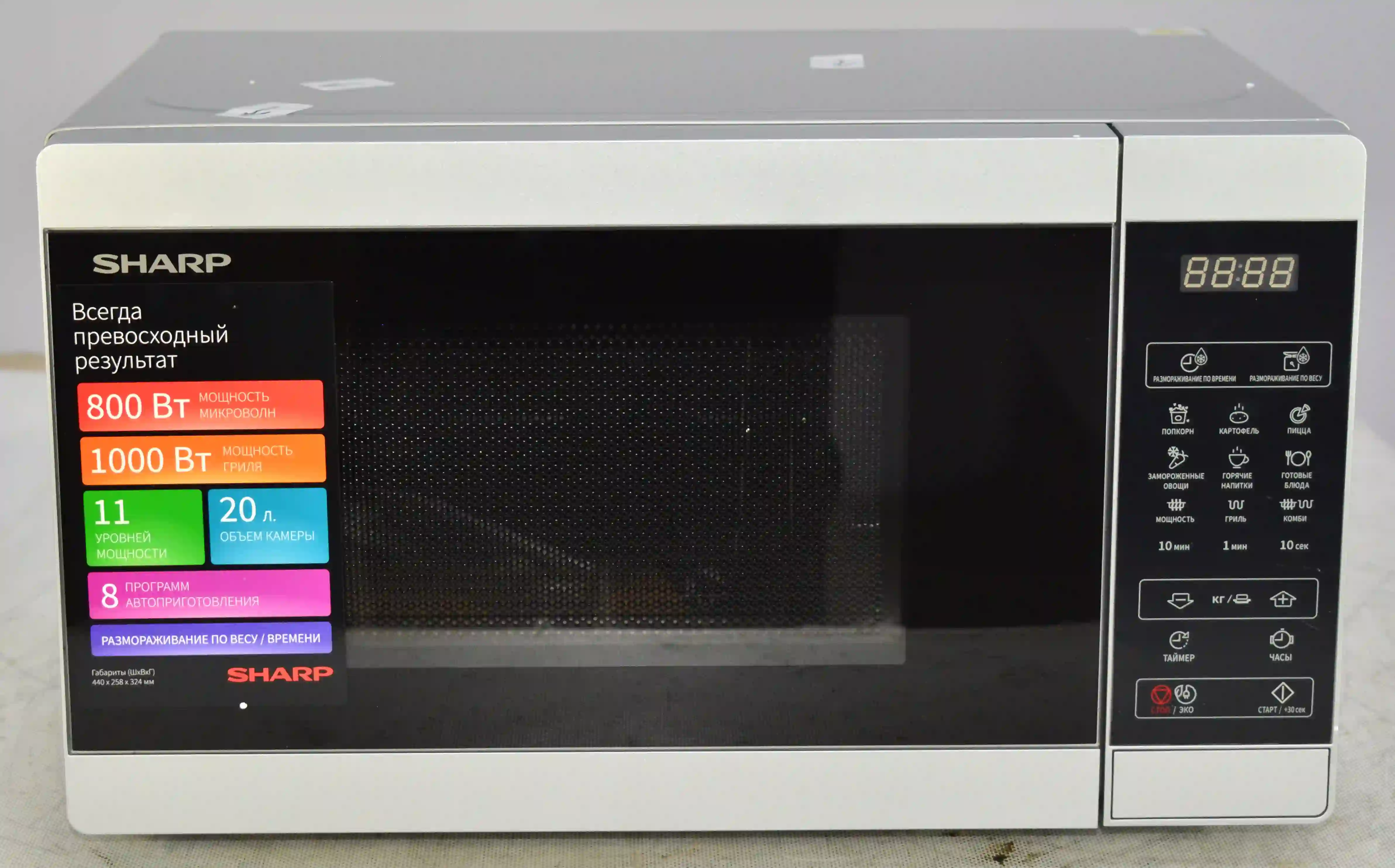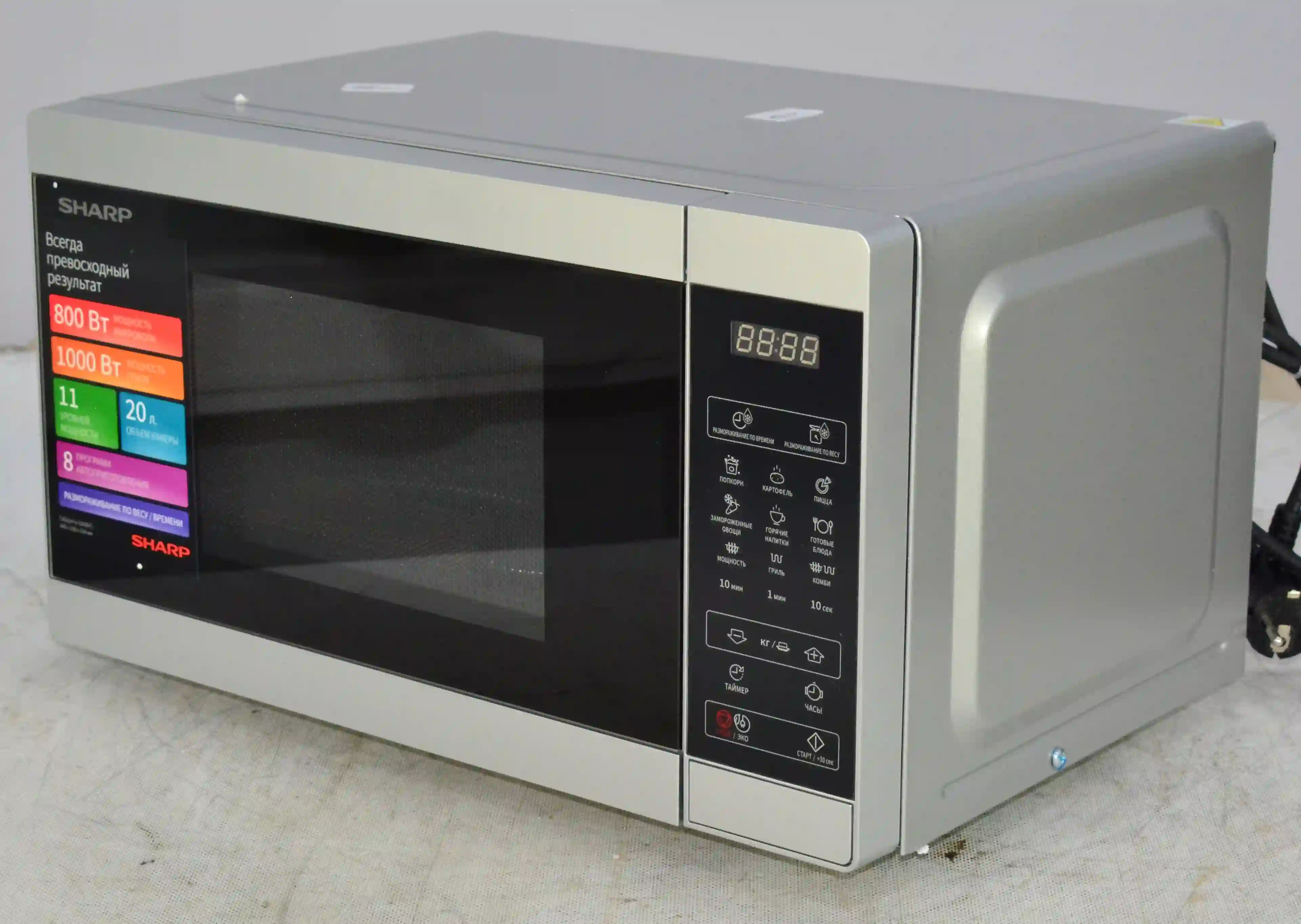 Качественная и надежная микроволновая печь Sharp - это не только привычный разогрев напитков и блюд, но и приготовление вкусных домашних рецептов для всей семьи. Микроволновые печи Sharp выполнены в универсальной цветовой гамме и отлично впишутся в интерьер любой кухни. Кроме того, они простые и понятные в применении. Особенности: мощность СВЧ с грилем 1270 Вт, объем 20 литров, диаметр поворотного столика 255 мм, электронное управление, встроенные часы/таймер, автоменю 6 программ.
