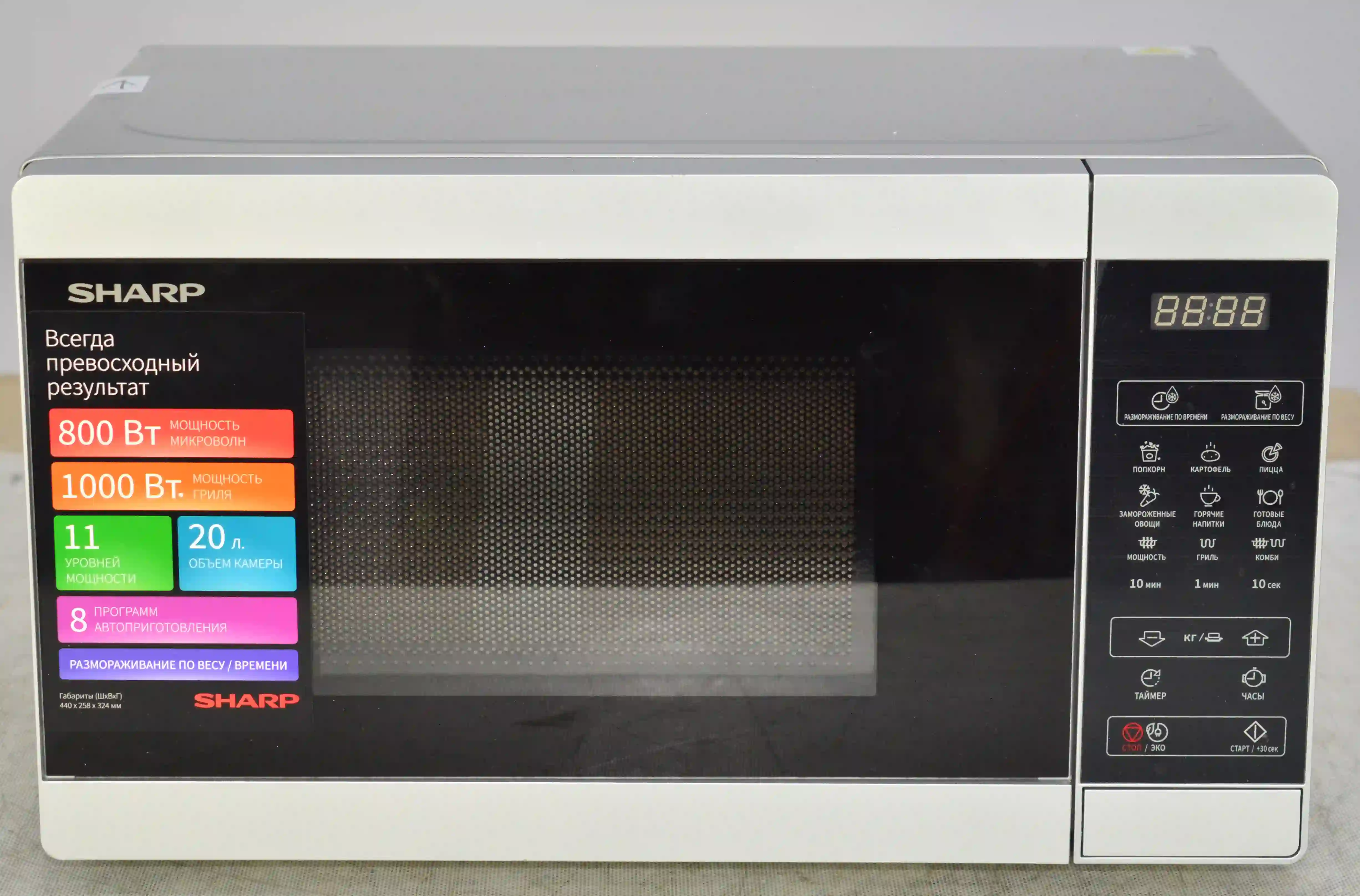 Качественная и надежная микроволновая печь Sharp - это не только привычный разогрев напитков и блюд, но и приготовление вкусных домашних рецептов для всей семьи. Микроволновые печи Sharp выполнены в универсальной цветовой гамме и отлично впишутся в интерьер любой кухни. Кроме того, они простые и понятные в применении. Особенности: мощность СВЧ с грилем 1270 Вт, объем 20 литров, диаметр поворотного столика 255 мм, электронное управление, встроенные часы/таймер, автоменю 6 программ.