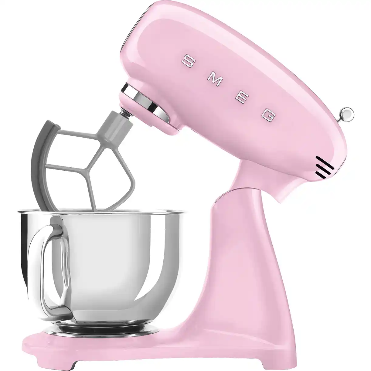 Планетарный миксер Smeg SMF05PKEU — это эталон стиля 50-х годов и мощности для истинных ценителей кулинарии. Корпус розового цвета из литого алюминия с изящным рычагом управления из нержавеющей стали придает прибору неповторимый шарм и обещает профессиональный результат в приготовлении разнообразных блюд, от воздушного безе до плотного хлебного теста.