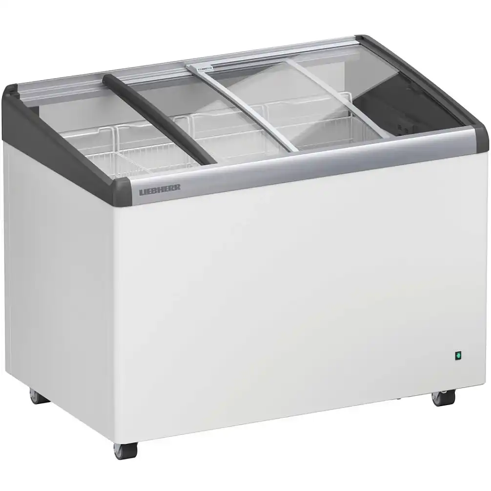 LIEBHERR EFI 2803-40 G79 оснащен стеклянной сдвижной крышкой, которая обеспечивает легкий доступ к продуктам. Крышка прозрачна, что позволяет видеть содержимое ларя без необходимости его открывать, что способствует сохранению холода внутри.