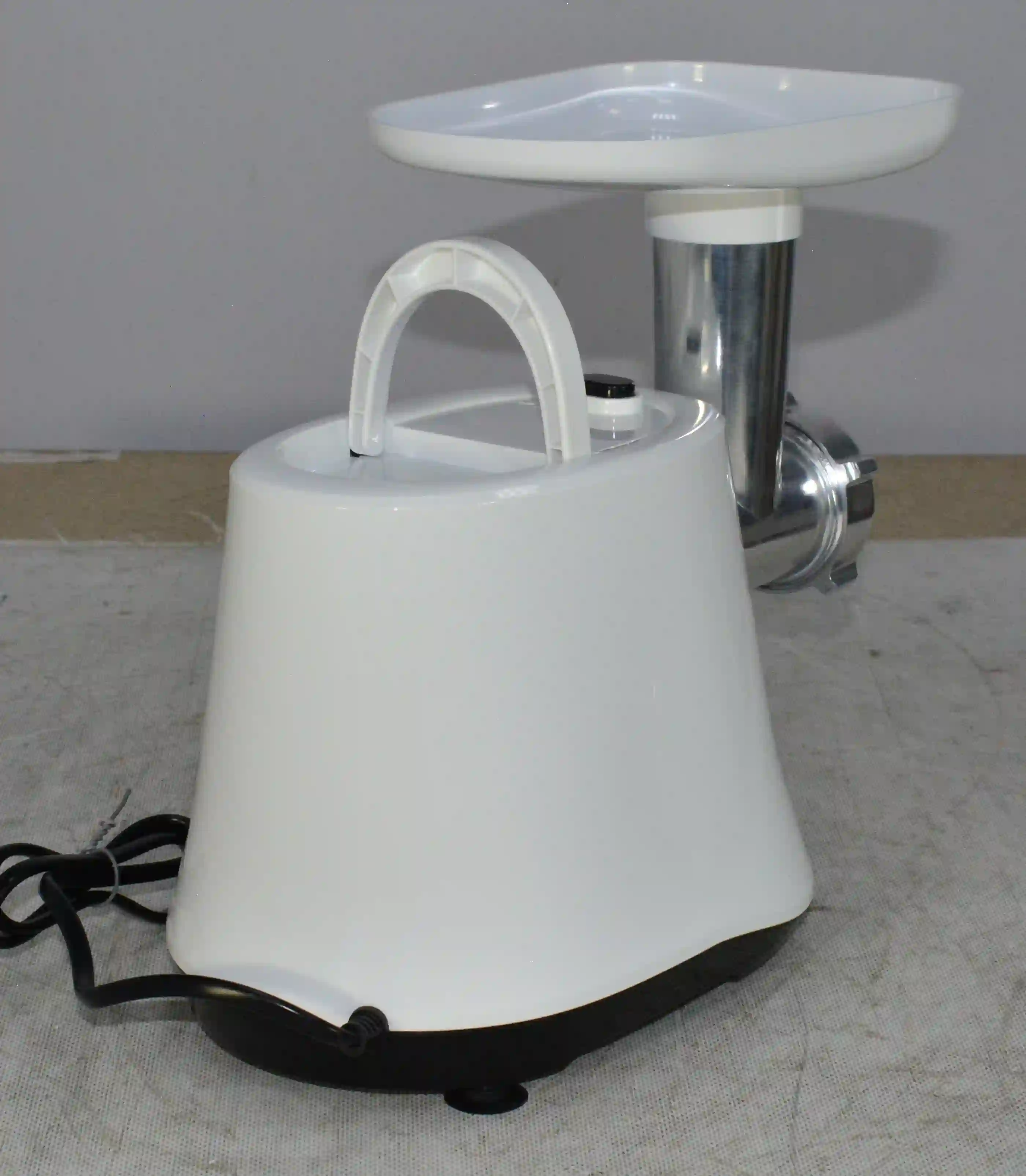 Мясорубка поставляется с двумя решетками разного диаметра, что позволяет измельчать продукты до нужной консистенции. В комплекте также есть насадка для приготовления колбасок, толкатель для удобного загрузки продуктов и лоток для сбора готового фарша. Это делает устройство универсальным и удобным в использовании.