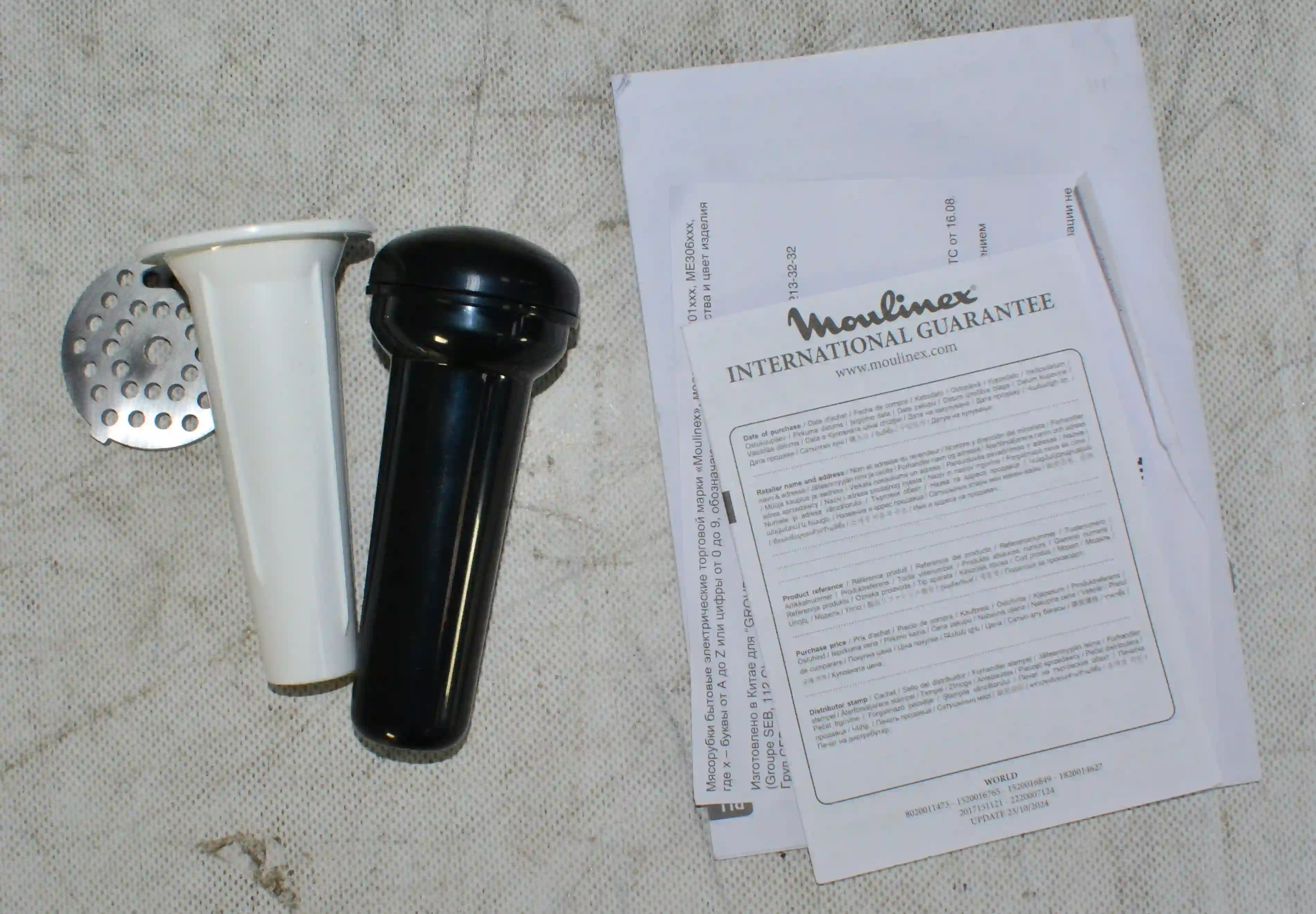 Комплектность: Документация, диски для фарша-2шт, толкатель, насадка, нож