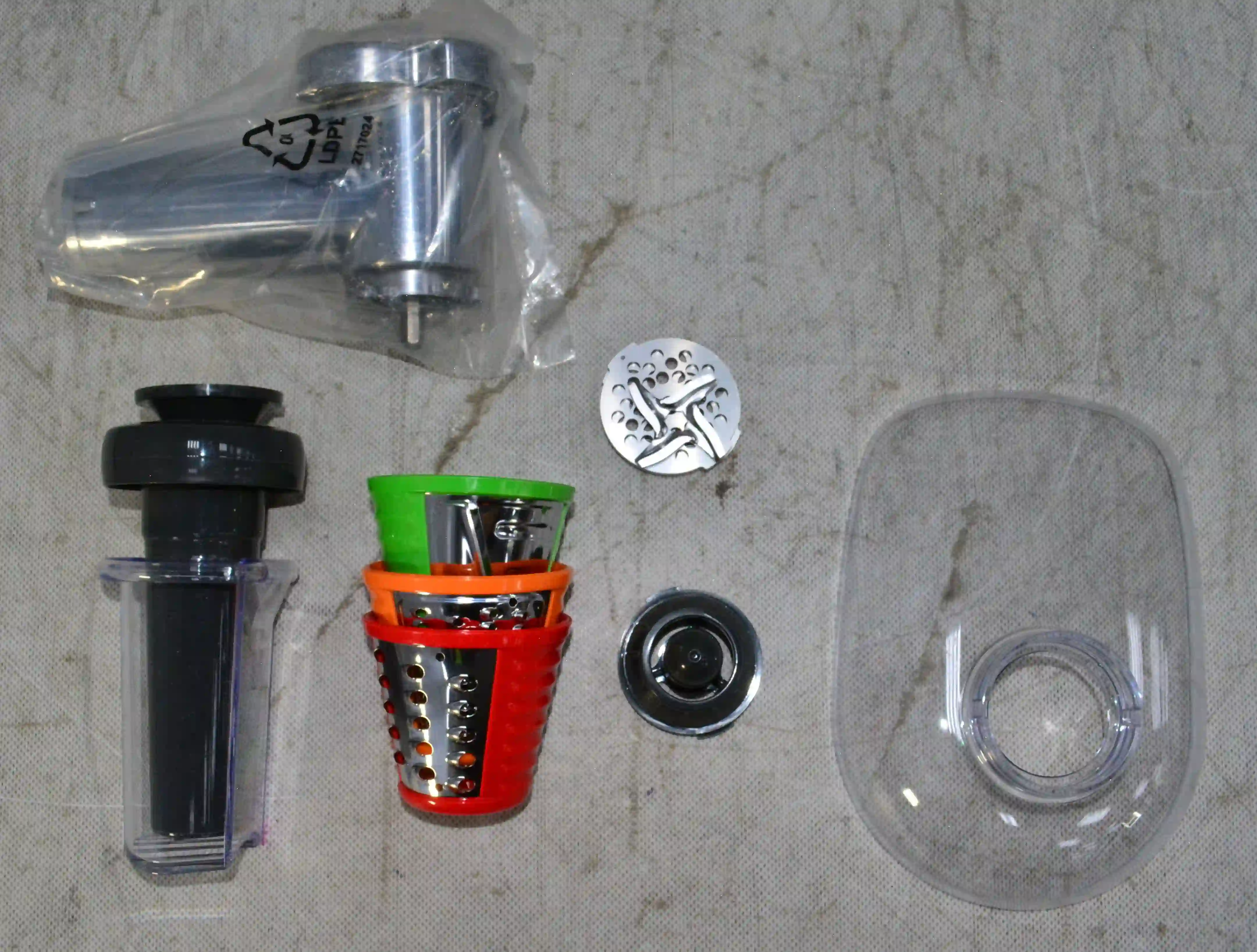 - Дополнительные насадки: Для кеббе, Для колбасок, Для ломтиков, Для шинковки мелкая, Для шинковки