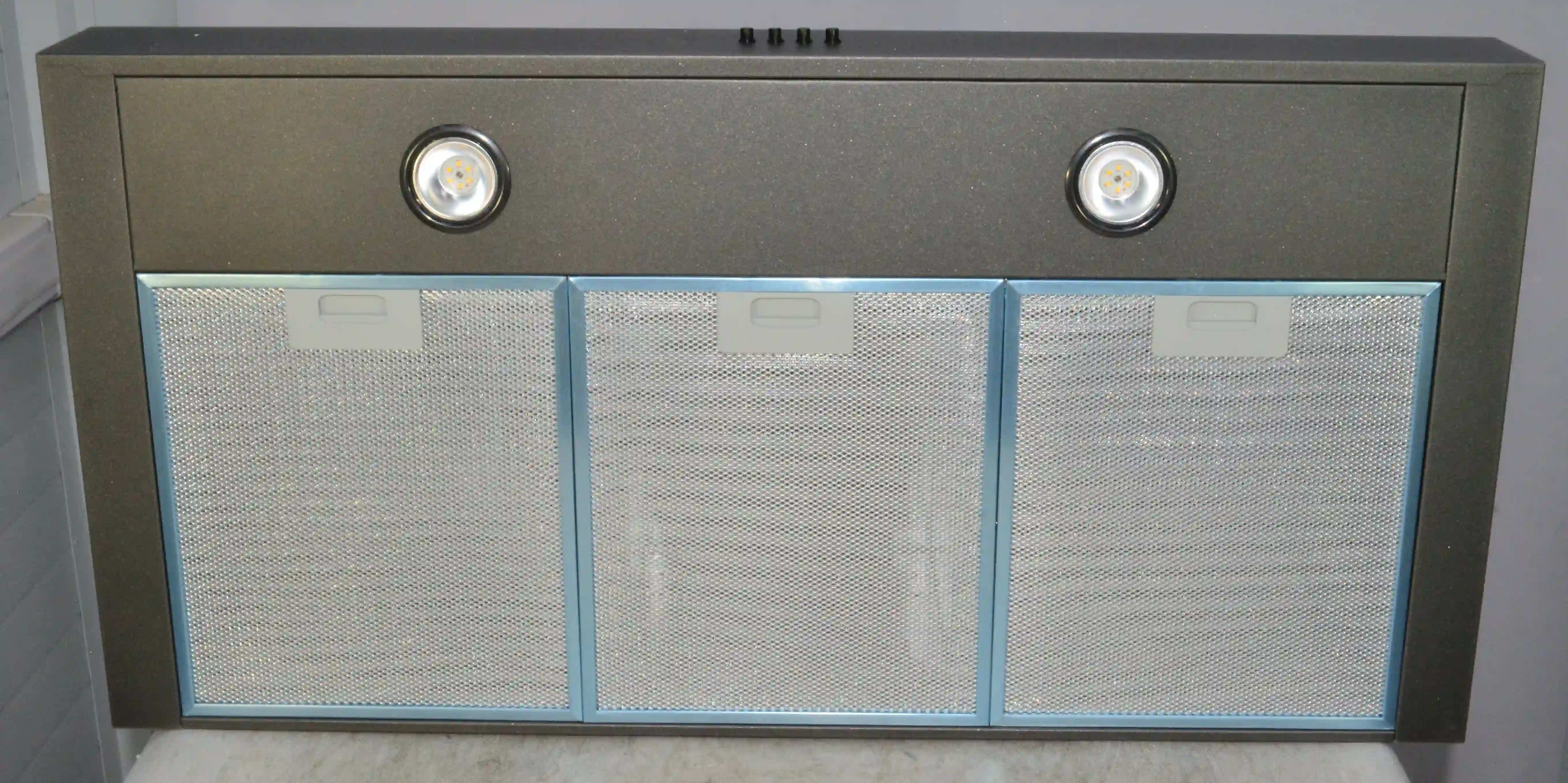 Вытяжка выполнена в декоративном дизайне с эффектом чугуна, что придает ей особый шик и подчеркивает уникальность вашего интерьера. Широкая конструкция размером 90 см идеально закрывает зону над варочной поверхностью, обеспечивая качественное удаление всех примесей и загрязнений.