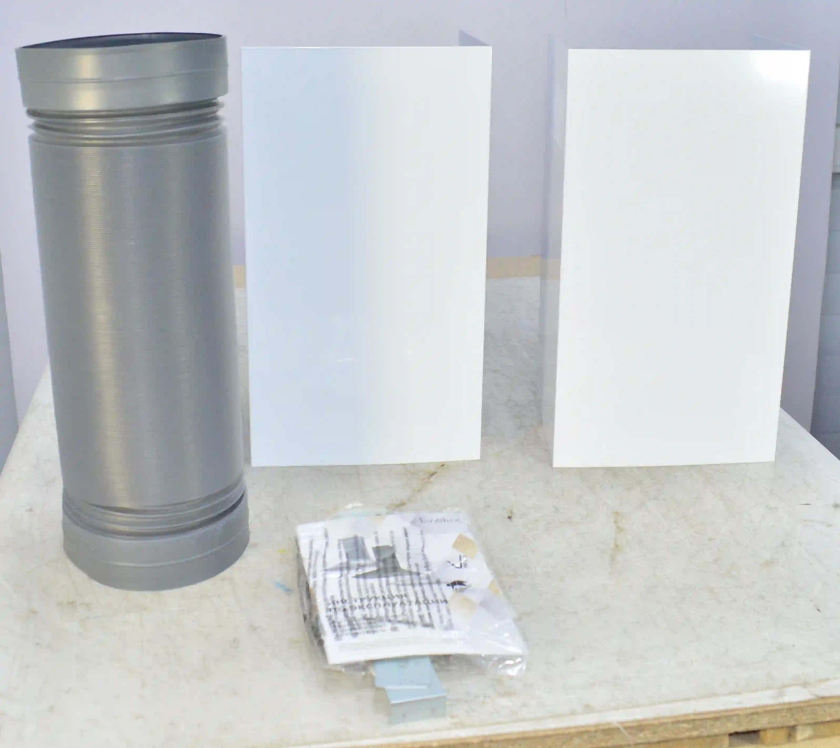 Комплектность: вытяжка, воздуховод, 2 дымохода, документация, набор креплений