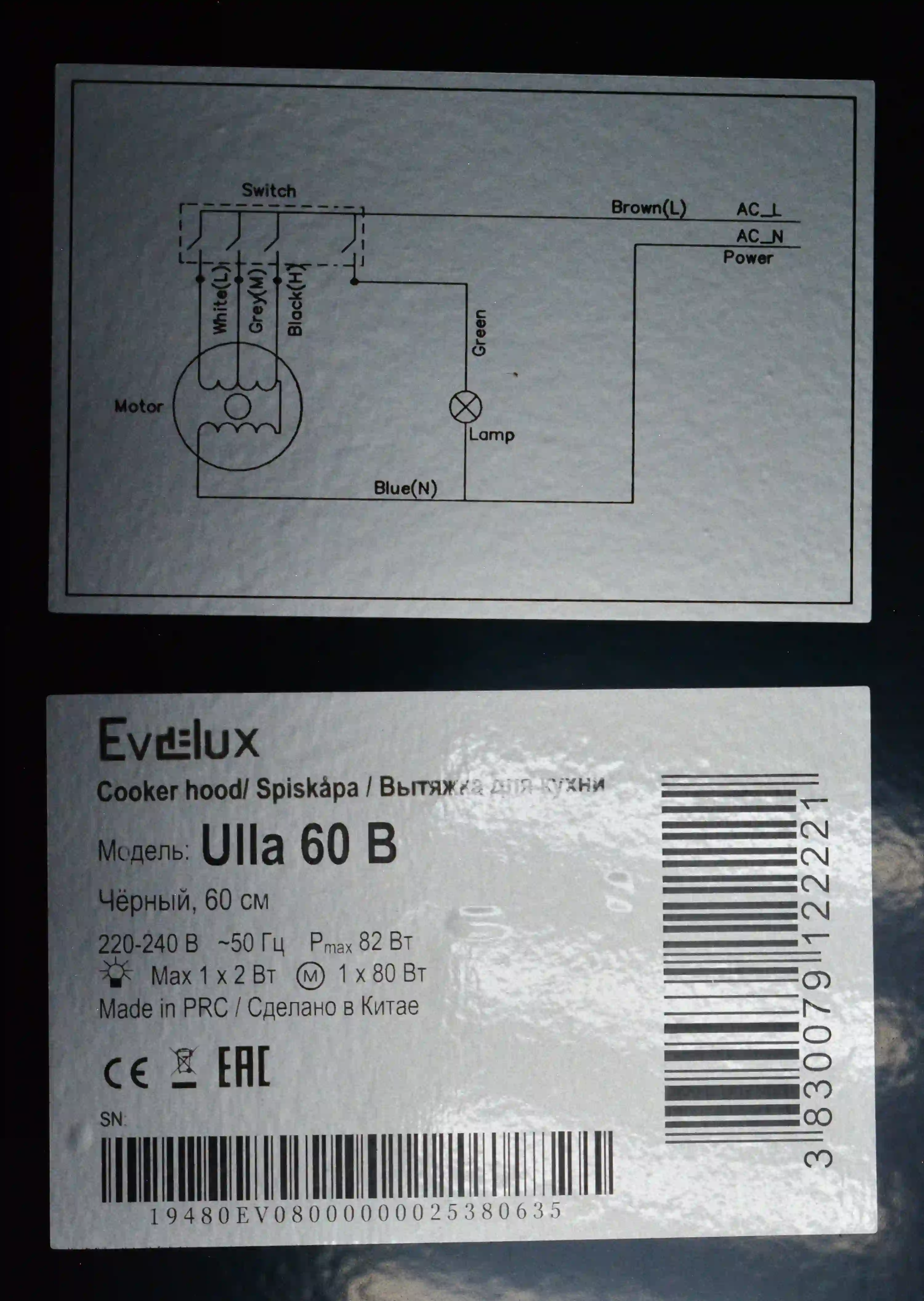 Вытяжка подвесная EVELUX Ulla 60 B k6 000085278