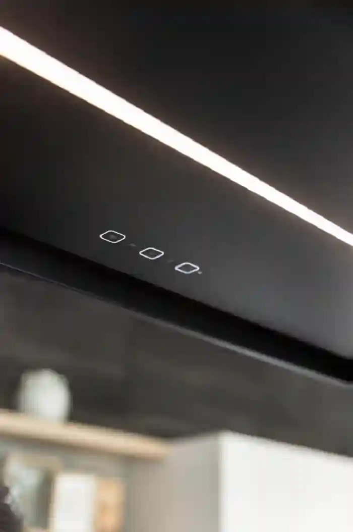 Вытяжка выполнена в матовом черном цвете, что придает ей современный и малоизменчивый вид. Этот цвет легко сочетается с различными кухонными стилями, от минималистичного до более классического. Материал, из которого изготовлена вытяжка, обеспечивает долговечность и простоту в уходе. Лаконичные линии и гладкие поверхности делают ее не только высокофункциональной, но и визуально привлекательной.