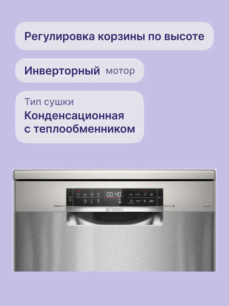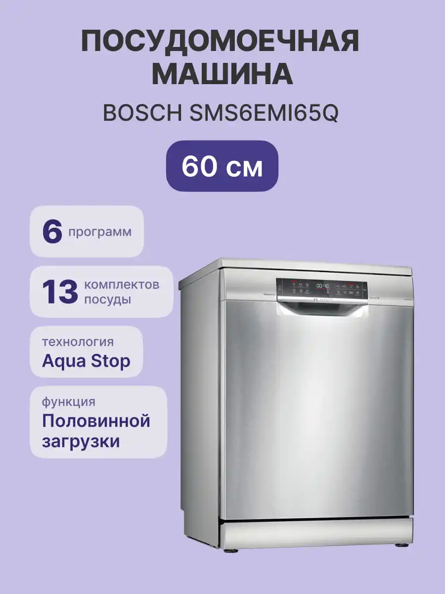 Приобретая посудомоечную машину BOSCH SMS6EMI65Q, вы получаете дополнительное время для себя и своих близких. Благодаря своей надежности и отличной производительности она станет незаменимым помощником в бытовых делах. Вы получаете однолетнюю гарантию от производителя, что подчеркивает надежность этой модели.